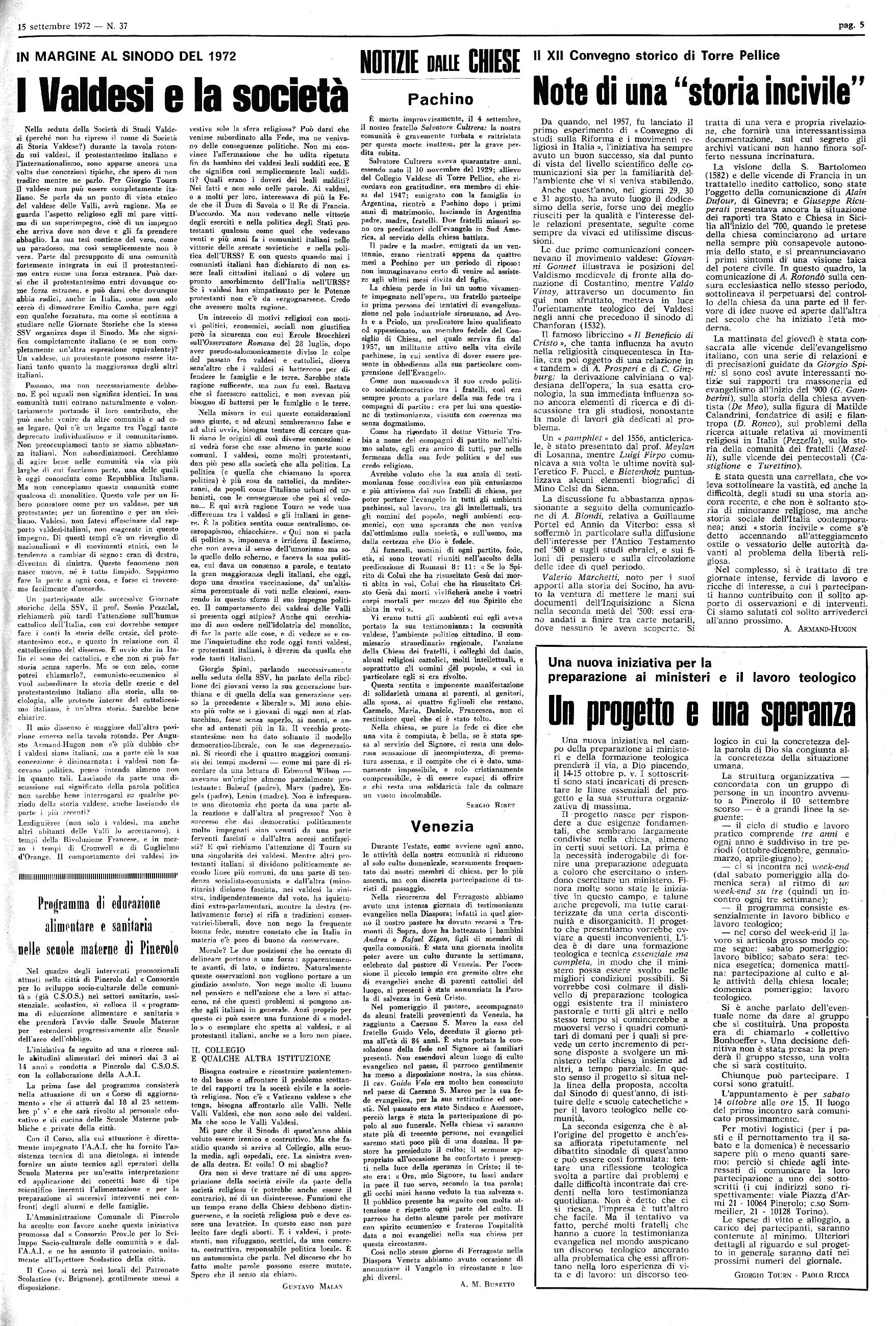 Anno 109 - Nnm. 37 ABBONAMENTI / L. 3.500 per l’interno Sped. in abb. postale - I Gruppo bis/70 1 TORRE PELLICE - 15 Settembre 1972