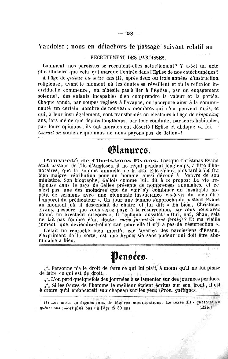 C’était un reproche bien mérité; car l’avarice des paroissiens d’Evans,