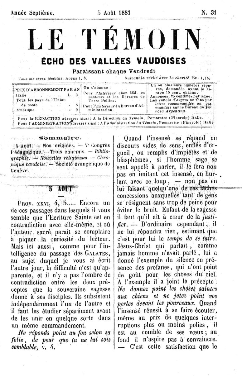 Pour Ja RÉDACTION adresser ainsi r A ia Direction qu Témoin t Pomaretto ^Pitierolo) ltn]îe.