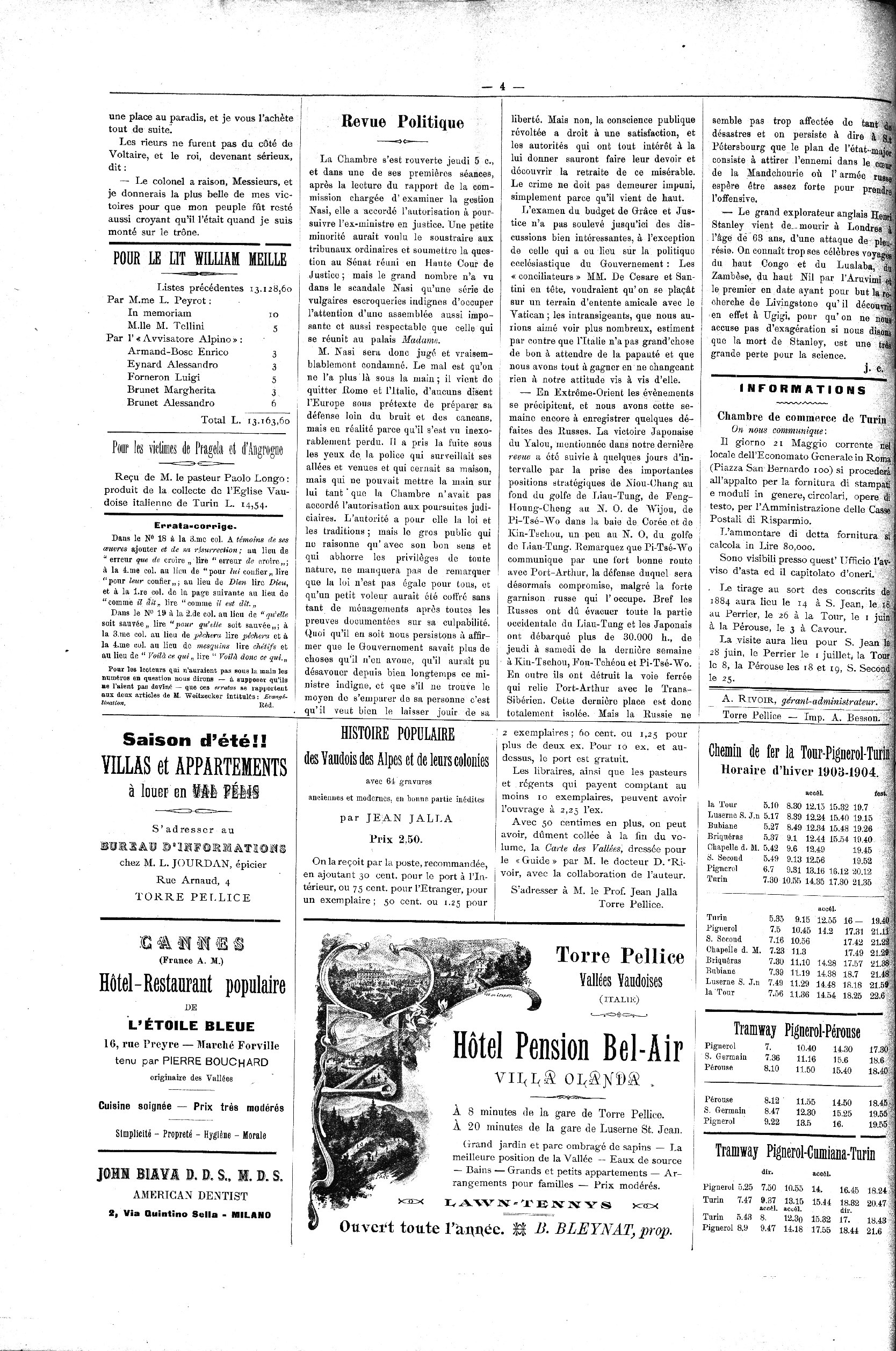 S’adresser pour la Rédaction à M. N. Toum, prof.. Torre Pellice,