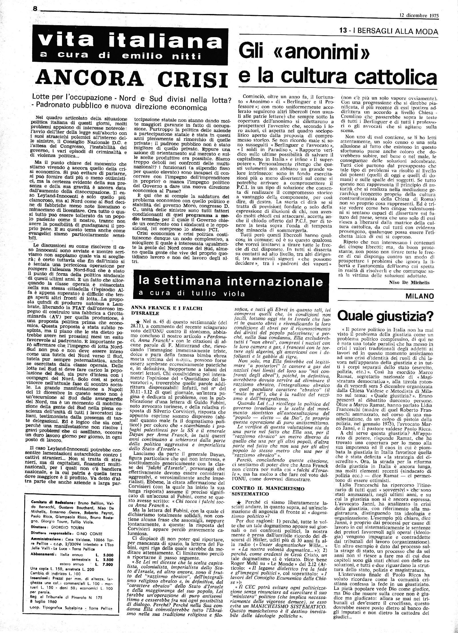 Ramat, segretario nazionale di « Magistratura democratica », alla tavola rotonda di venerdì sera 5 dicembre organizzata