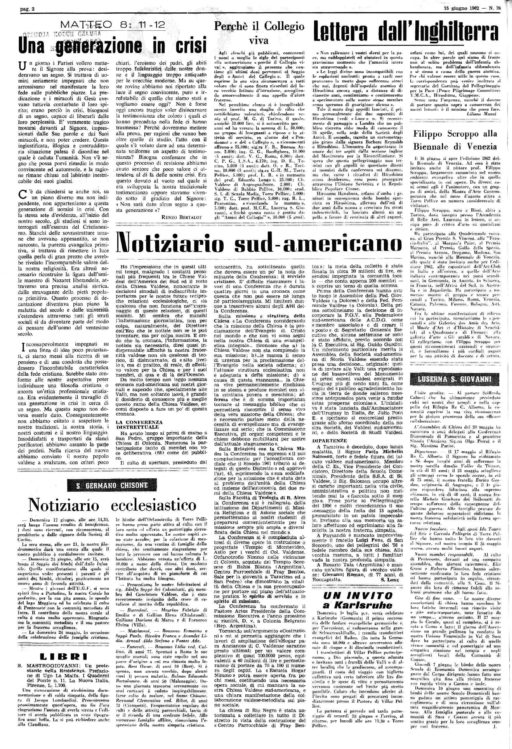 Anno XCII - Num. 24 I ABBONAME.NTI ( Eco: L. 1.300 per riniemo « Eco »e « Presenza Evangelica » Spedii. abb. poetale • I Groppo 1 TORRE PELLICE — 15 Giugno 1962 I