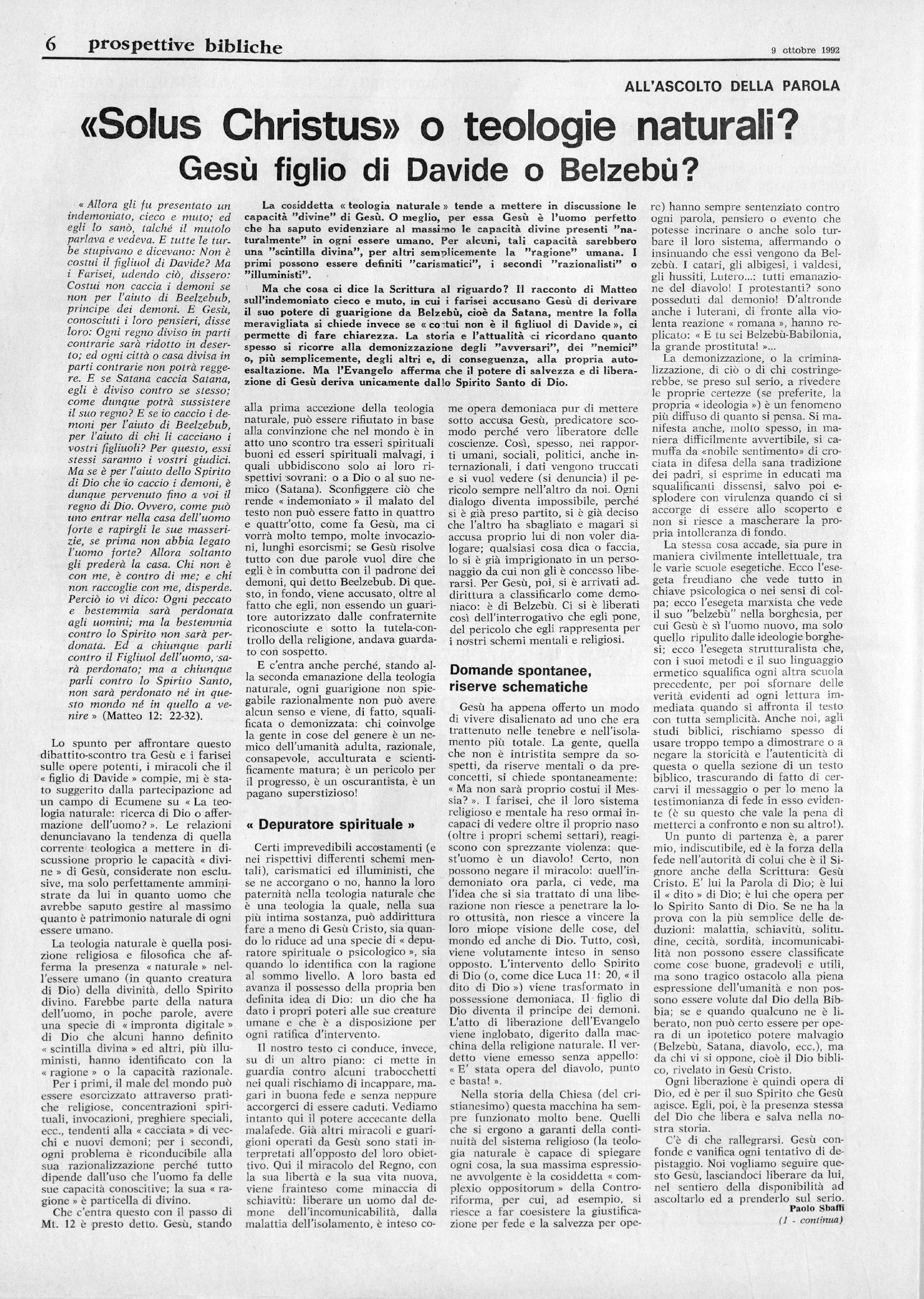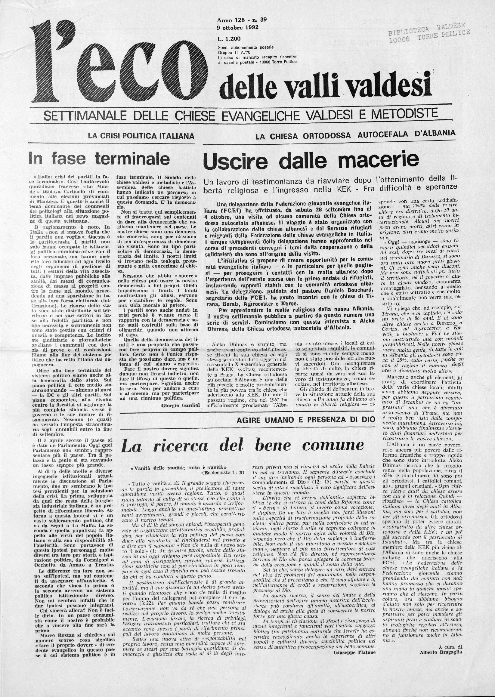 SETTIMANALE DELLE CHIESE EVANGELICHE VALDESI E METODISTE