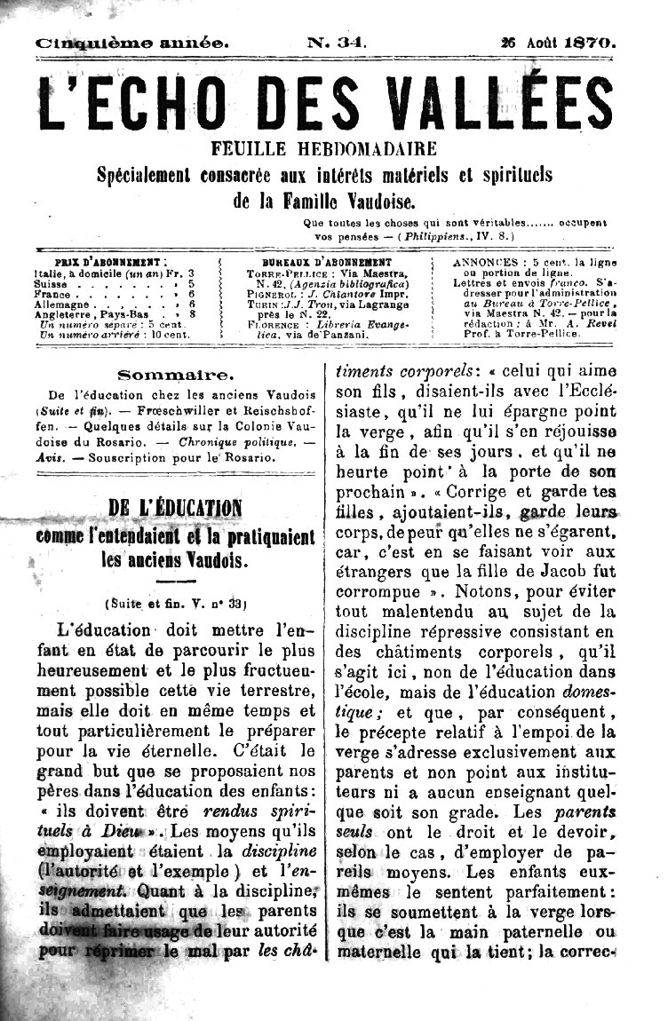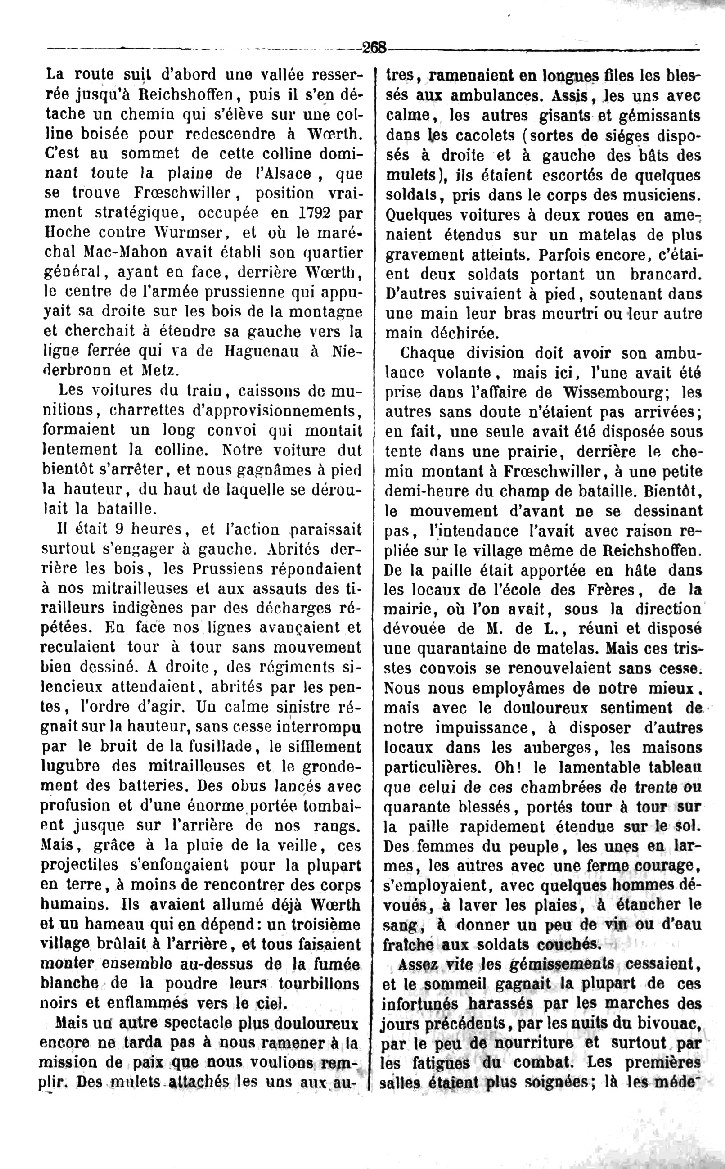 (Sutie et fin). — Frœschwiller et Reischsboffen. — Quelques détails sur la Colonie Vaudoise du Rosario. — Chronique politique. —