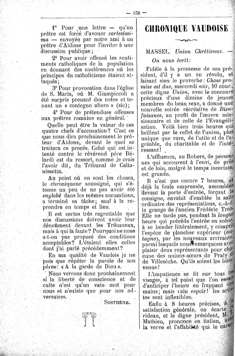 baptême du S. Esprit. — Encore Aidone. — Chronique Vaudoise. — Correspondance. — Nécrologie: Le prof,