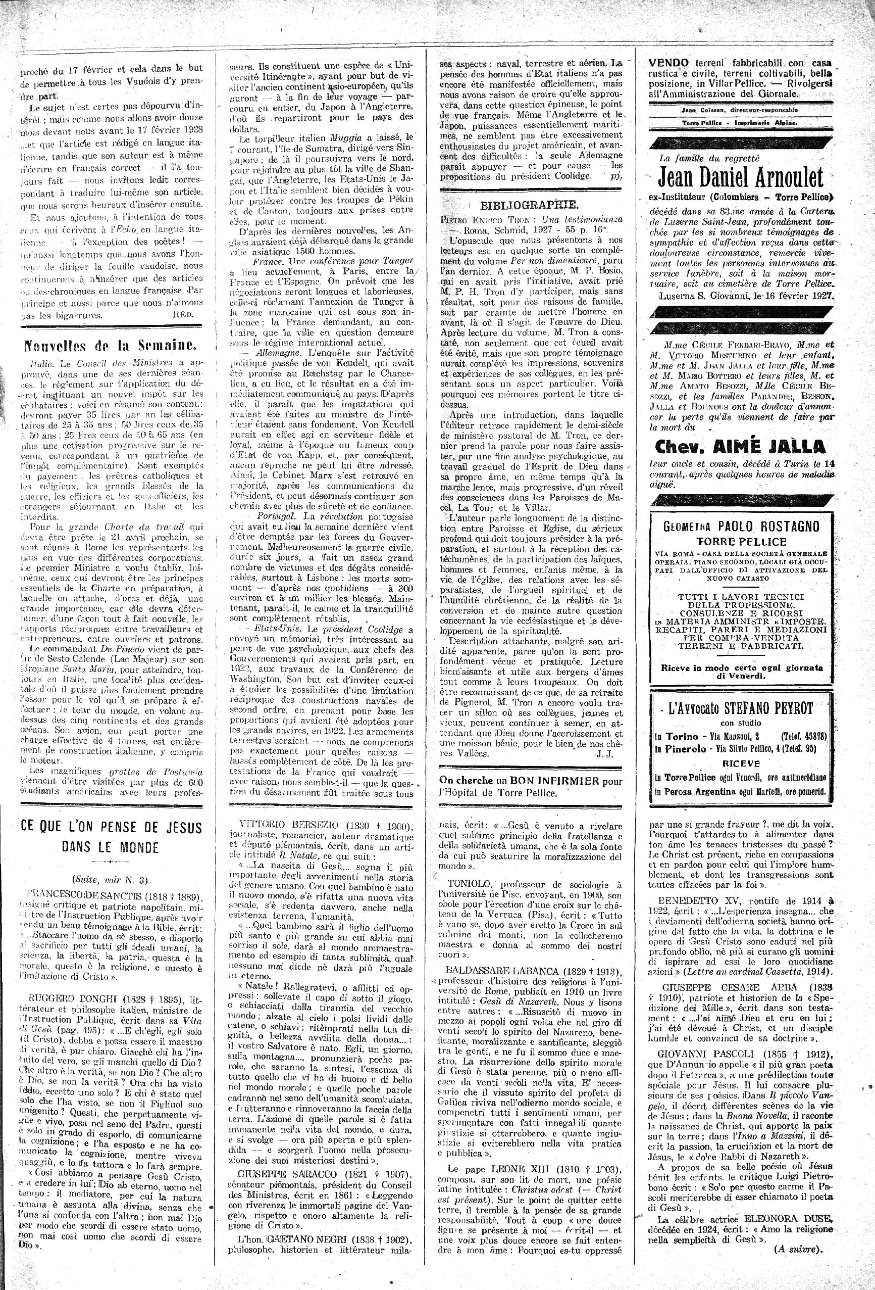 CASA DELLE DIACONESSE - Sede e Direzione : Linserna San Giovanni (Torino) Direttoi’e ; Pastore A. Comba. Angrogna