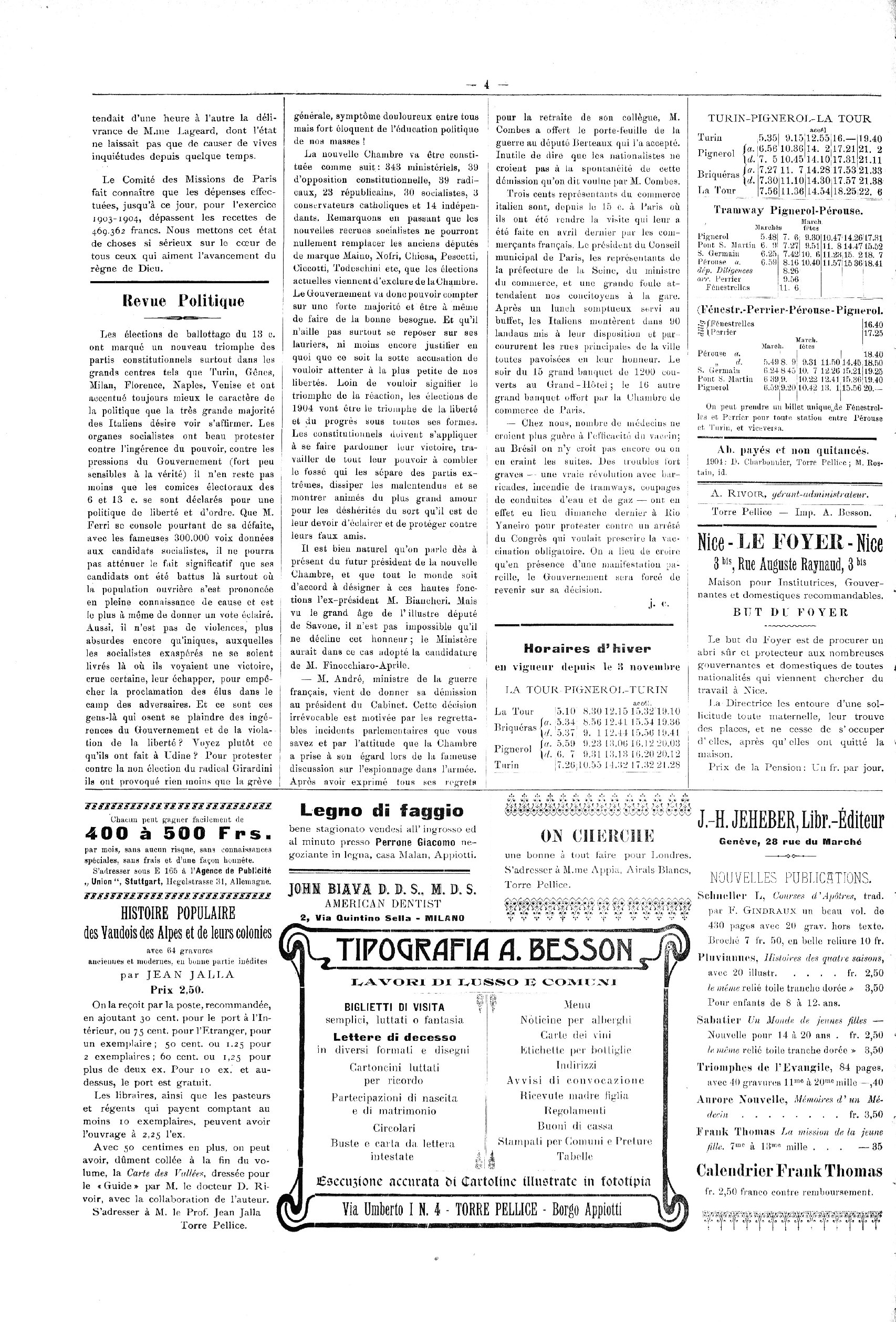 S’adresser pour la Rédaction à M. N. Touru, prof., Torre Pellice^