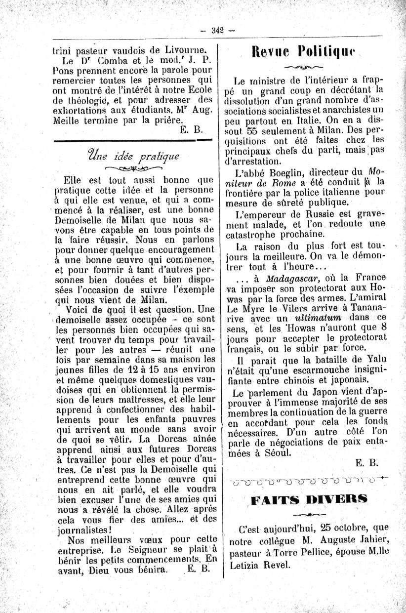 (Terre Pellice), et pour l’Administration A M. Jean Jaila,
