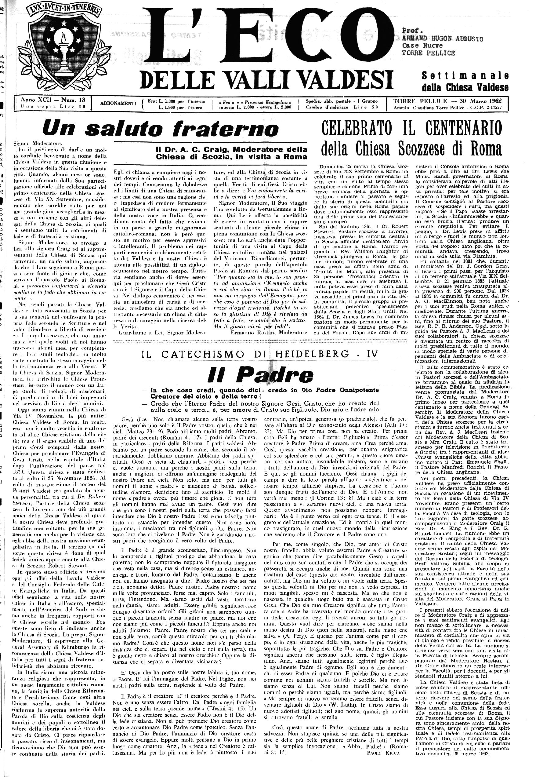 TORRE PELLICE — 30 Marzo 1962