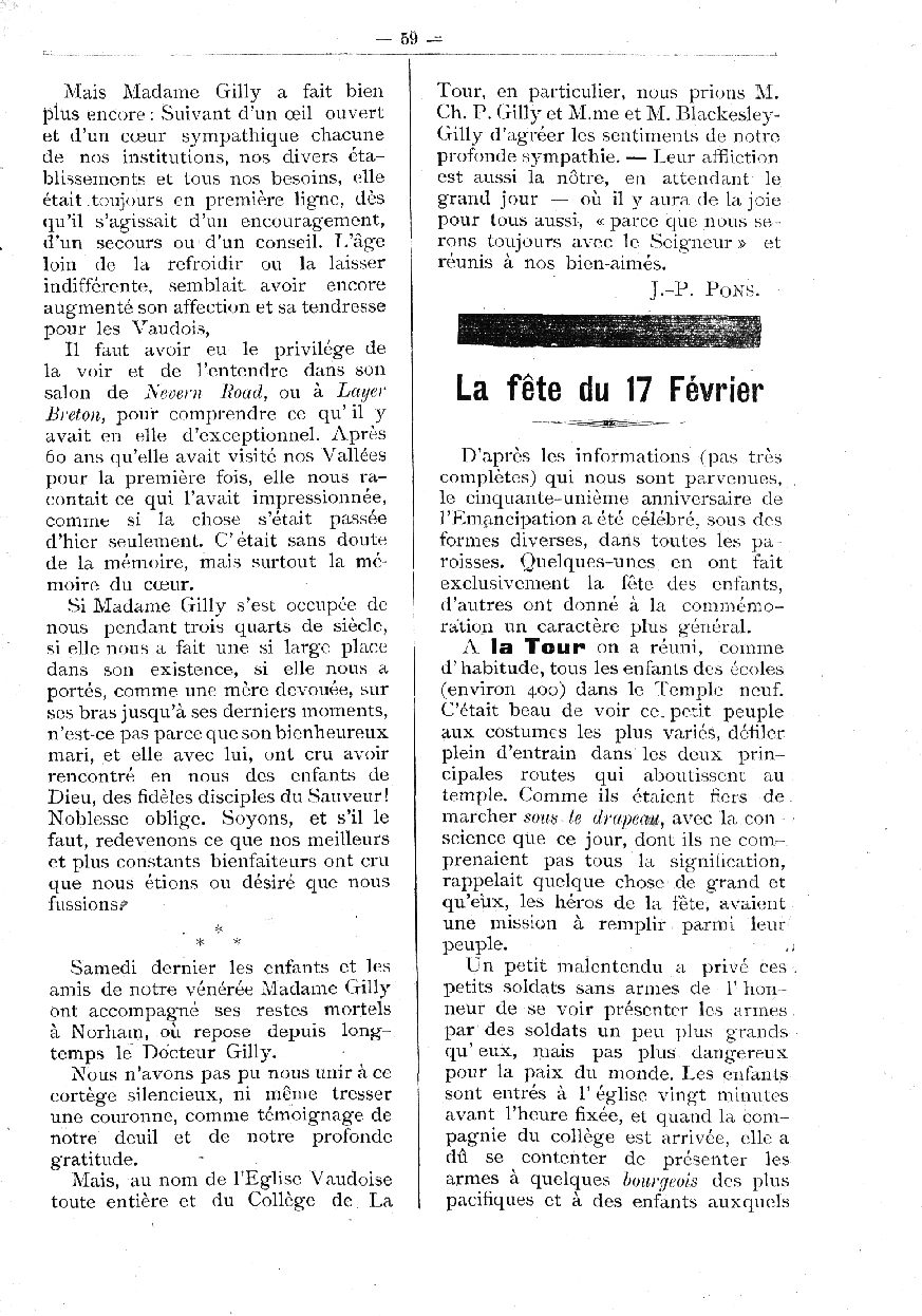 (veuve du D.rW.S. Gilly, bienfaiteur des Yaudois)