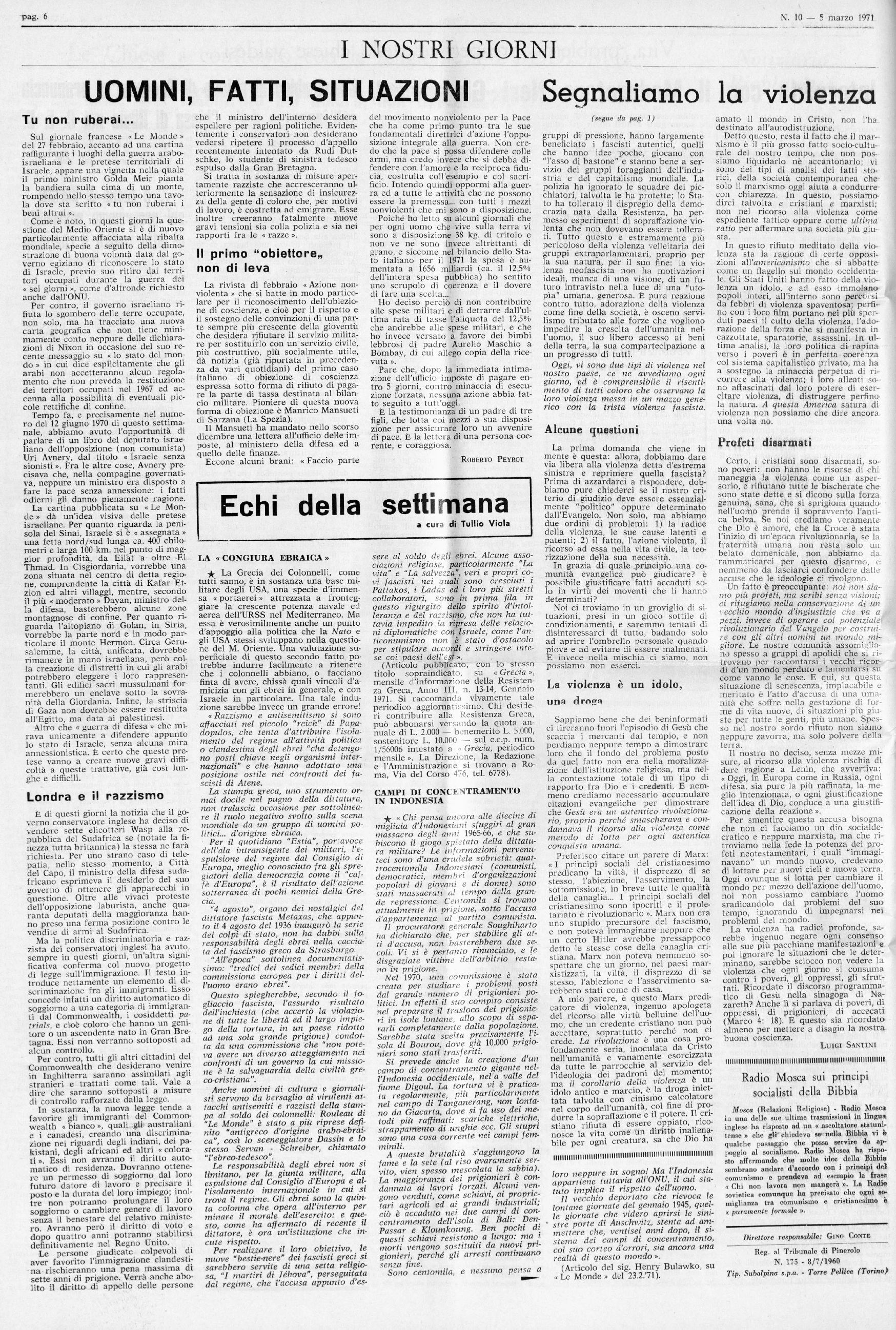 ABBONAMENTI { L. 3.000 per l’inlerno Sped. in abb. postale - I Gruppo bis/70 1 TORRE PELLICE 5 Marzo 1D71