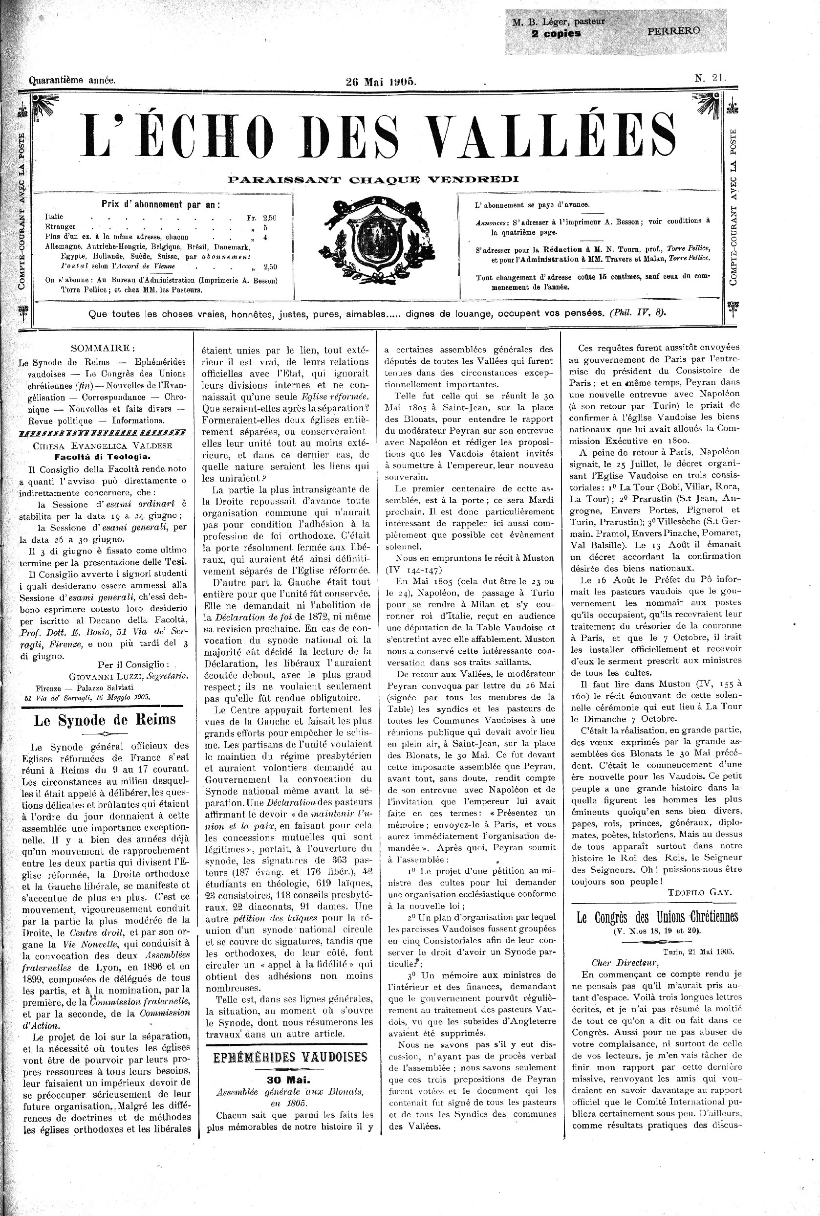 S’adresser pour la Rédaction è M. N. Toum, prof., Torre Pellice,