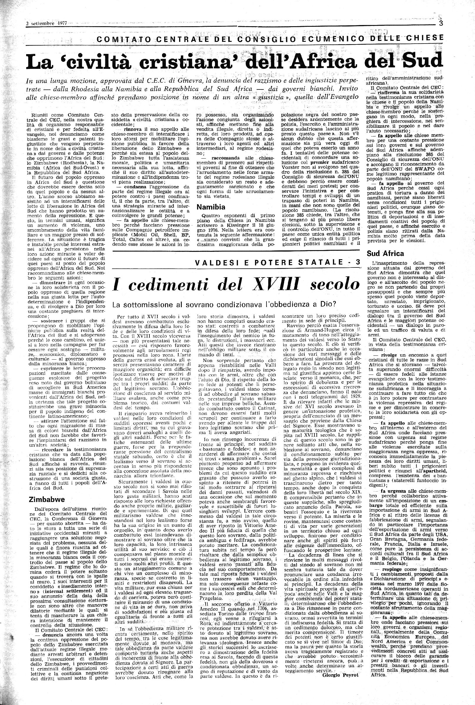 espresso, riferimento alla situazion0 d6lla Chiesa Valdese nel