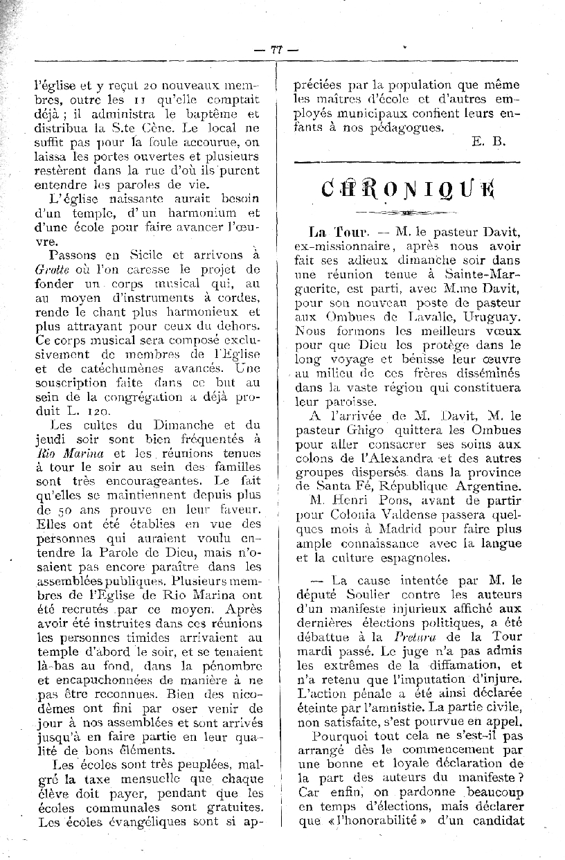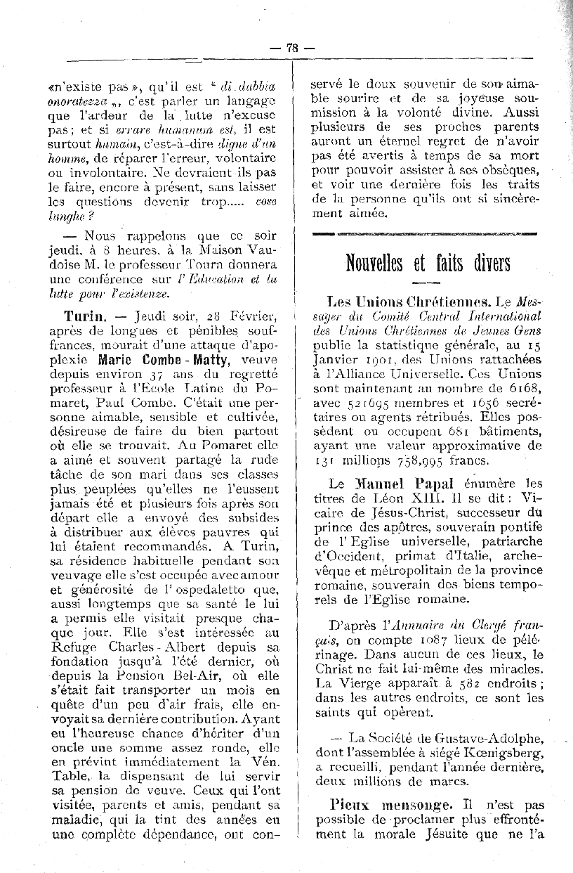 — Evangélisation — Chronique — Nouvelles et faits divers — Eevue Politique
