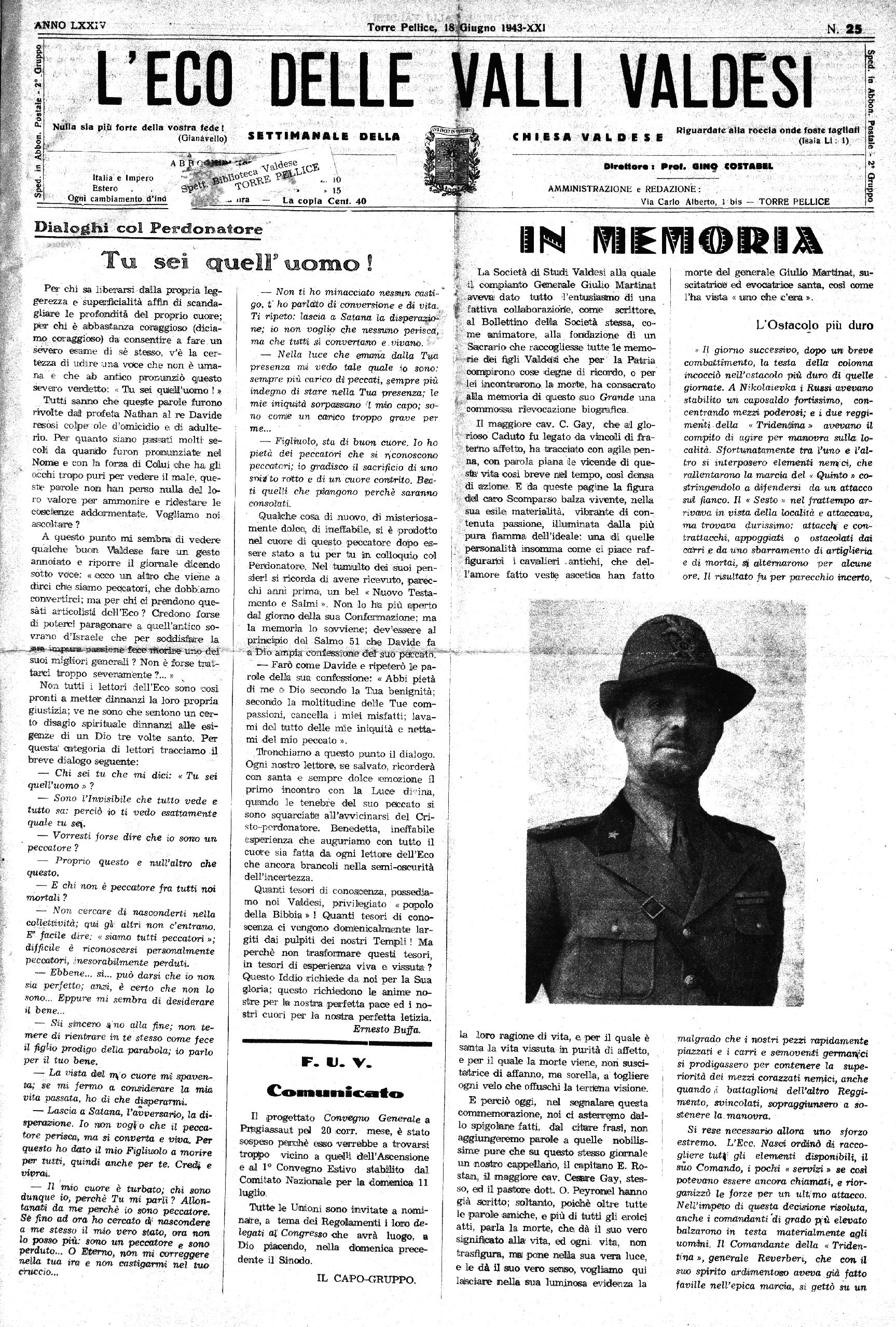 Capii Errnanno Rostan Cappellano Militare Valdese - Comando Presidio Militare - Torino.