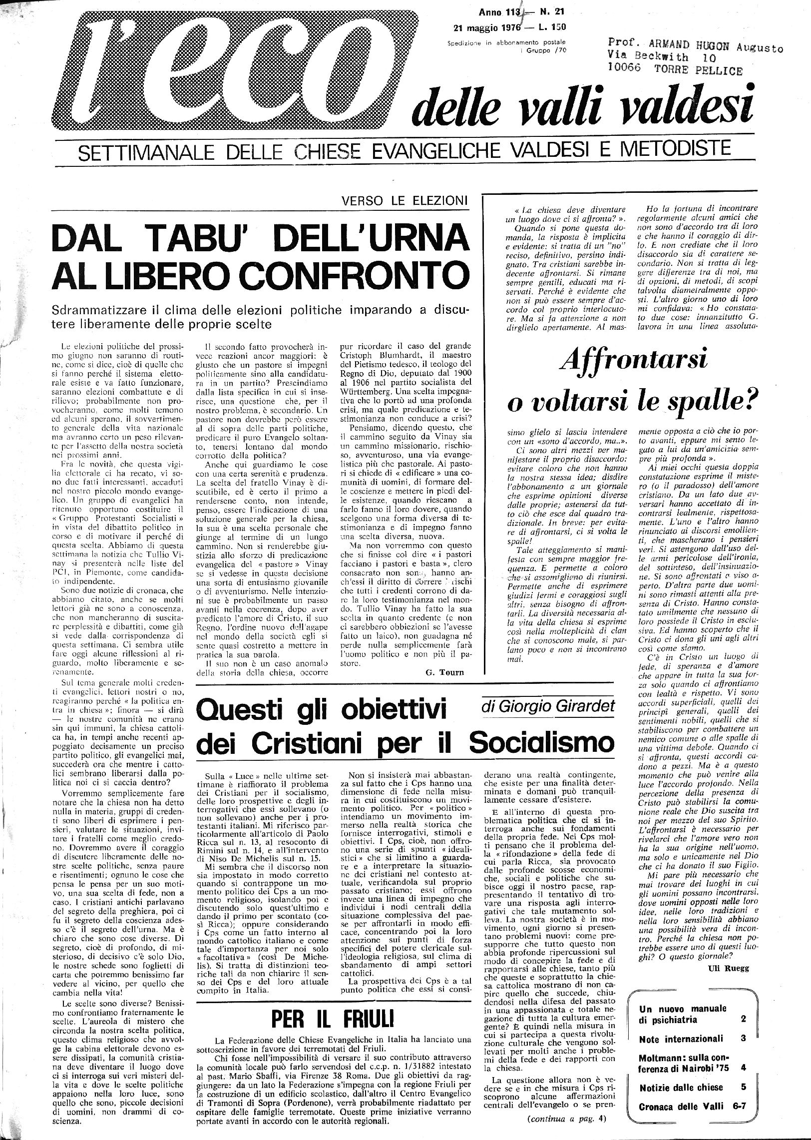 SETTIMANALE DELLE CHIESE EVANGELICHE VALDESI E METODISTE