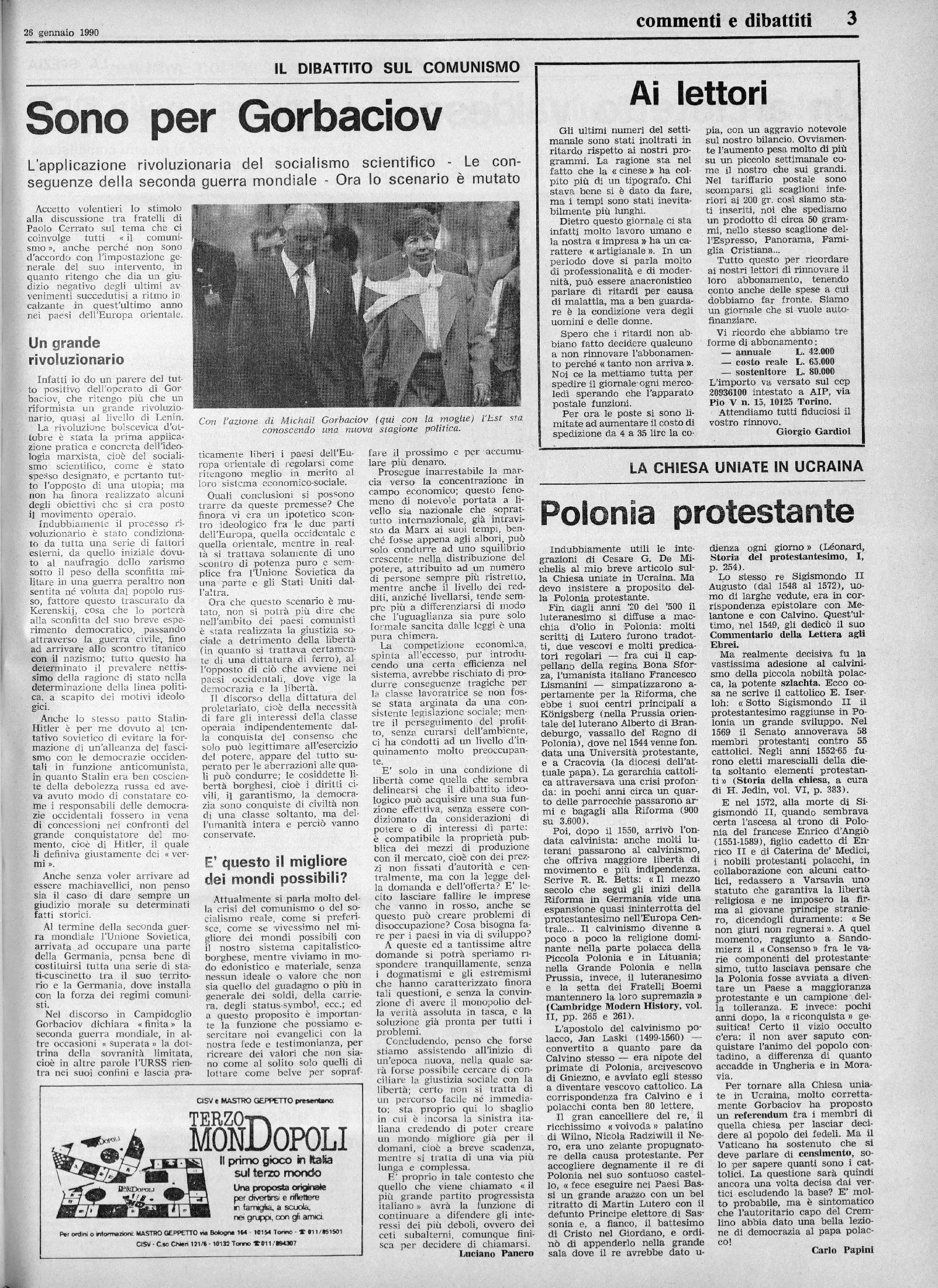 Geova, nel munero del 1° gennaio 1990 pubblica il rapporto