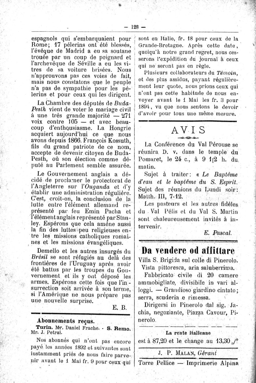 divers. ~ Revue politique. — Abonnements payés. — Annonces.