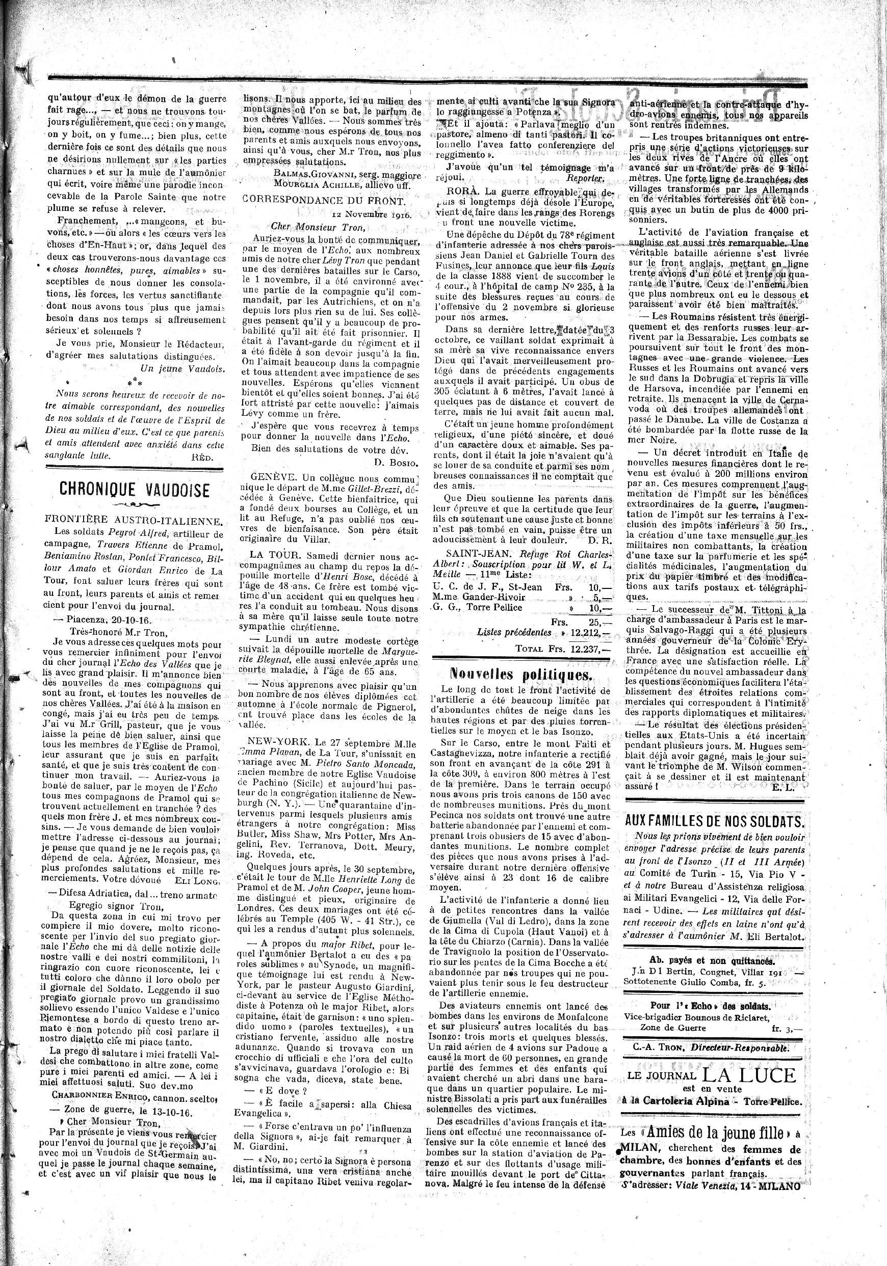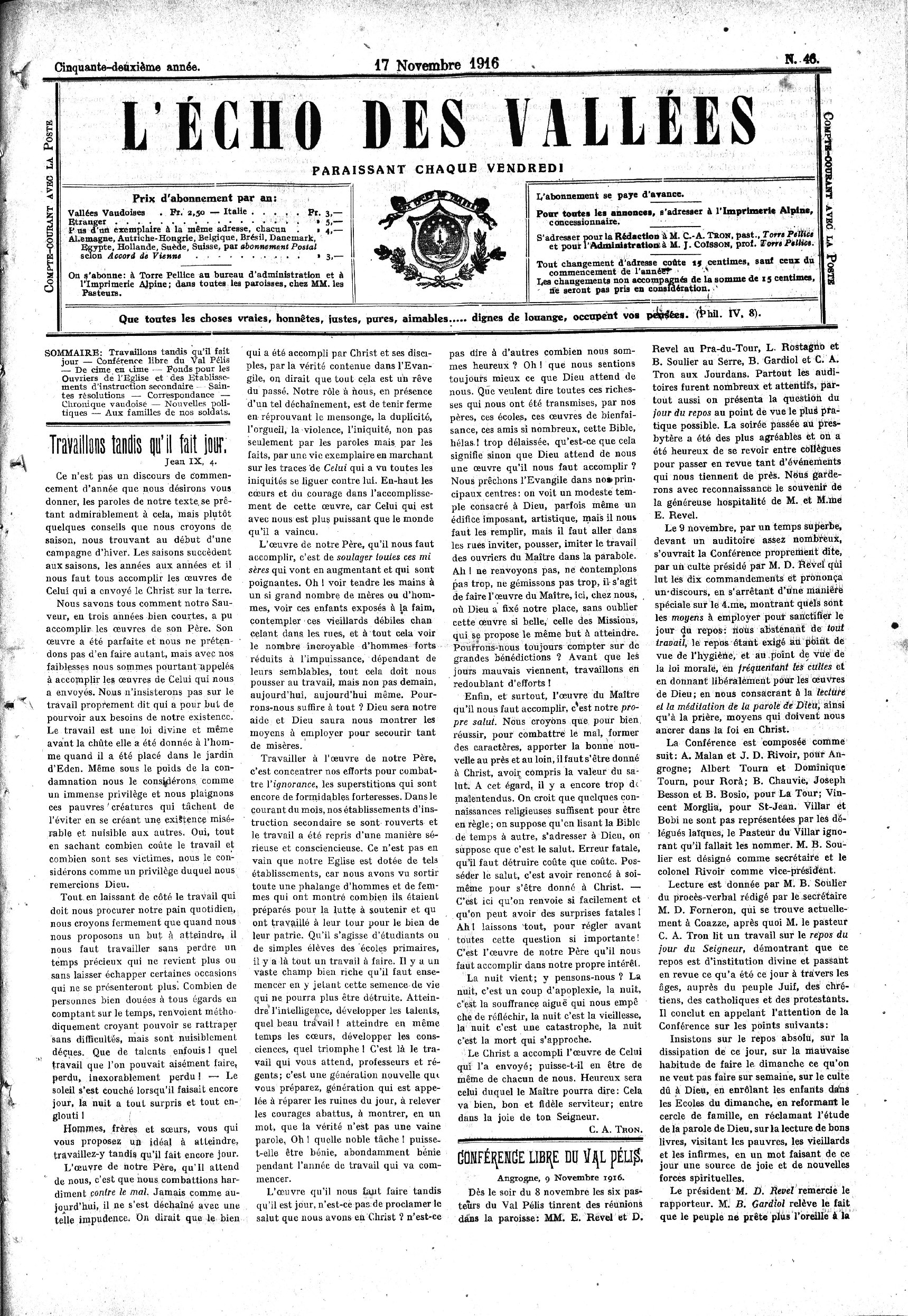 On s’abonne: à Torre Fellice an bureau d’administration et à