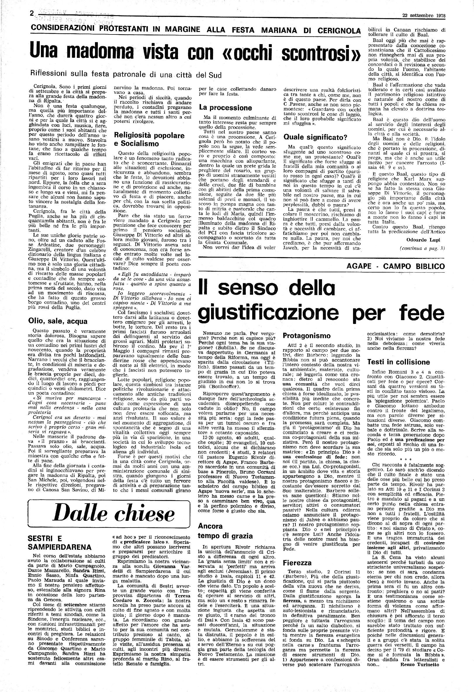 SETTIMANALE DELLE CHIESE EVANGELICHE VALDESI E METODISTE
