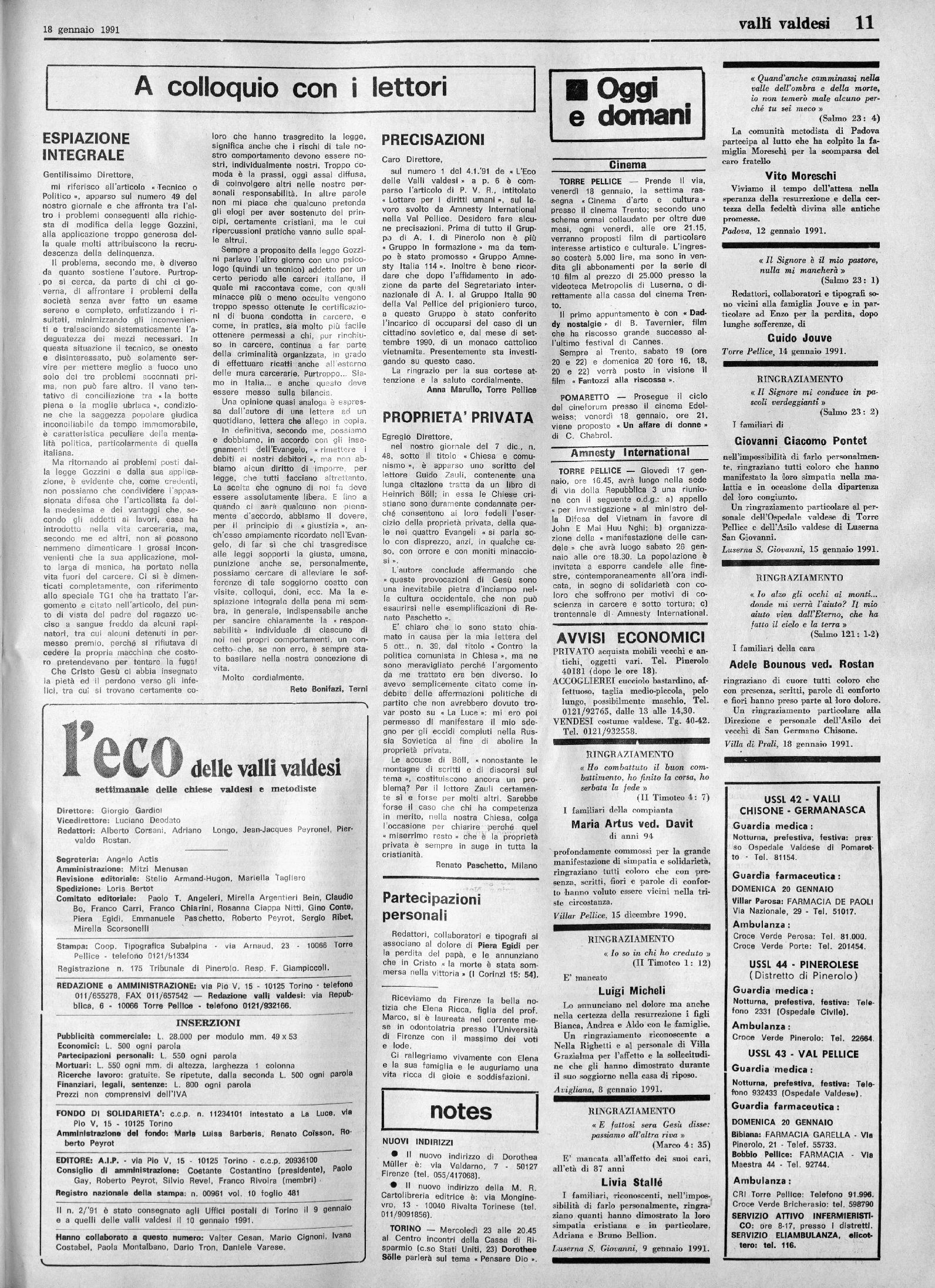 SETTIMANALE DELLE CHIESE EVANGELICHE VALDESI E METODISTE