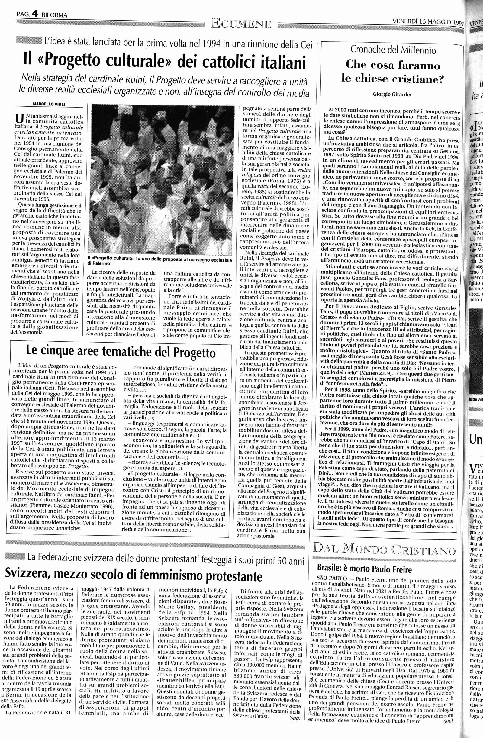 sperimentata, le chiese devono dare un contributo particolare alla riconciliazione tra i popoli e al loro
