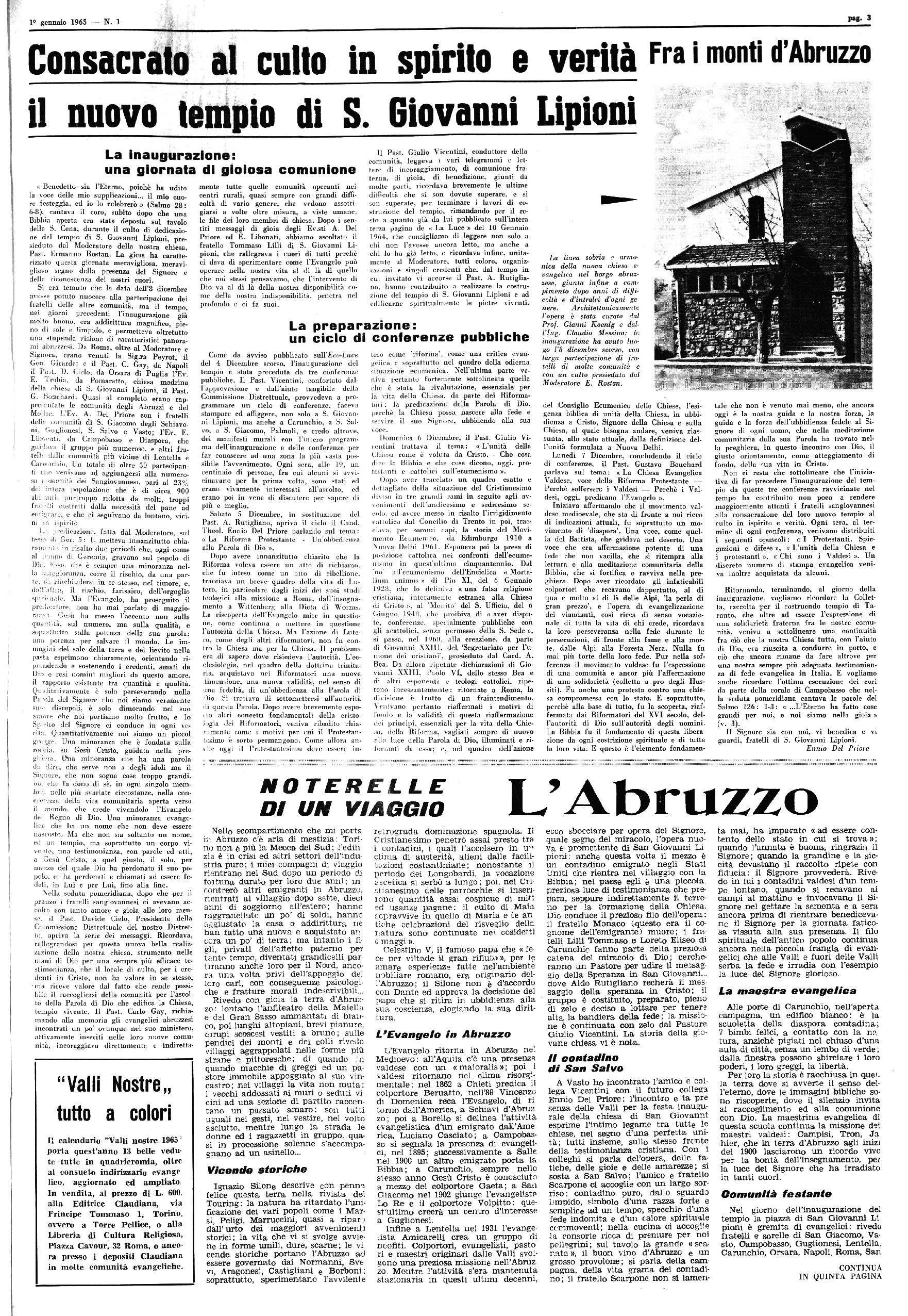 TORRE PELLICE. 1 gennaio 1965