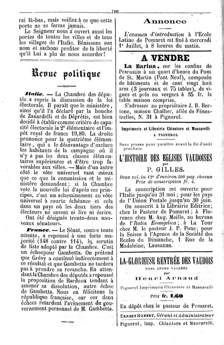 PRIX ABEONNEMENT PAR AN Italie - . ■. L. 3 Tous los pays de rUoion do poste ... *6 Amérique , . . » P On s’abonne : Pour VIntérieur chez MM. lea pasteurs et les libraires de Torre Pellice. Pour l’.ffccfme«»*auBureau d’Ad-1 ministration. Un ou plusieurs numéros sépa- rés, demandés avant le ti- rage 10 cent, chacun. Anuonces: 25 centimes par ligne. Les envois d'argent se font par lettre recommandée ou par mandats sur le Bureau de Pe- rasa Argentina.