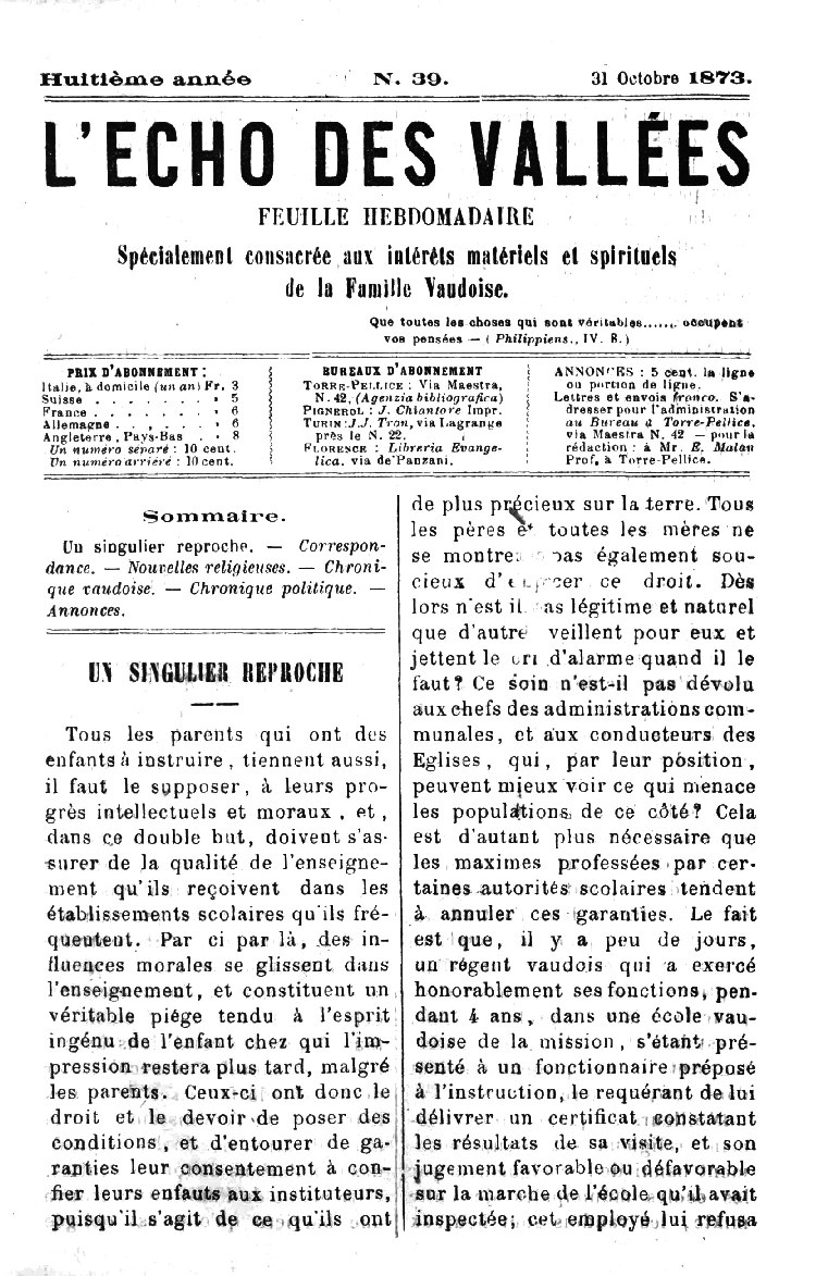 üü singulier reproche. — Correspondance. — Nouvelles religieuses. — Chronique vaudoise. — Chronique politique. —