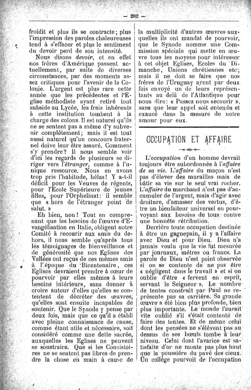 . Quant au temple de Golonia Valdense, M. Bounous informait le Synode que la dépense totale devant