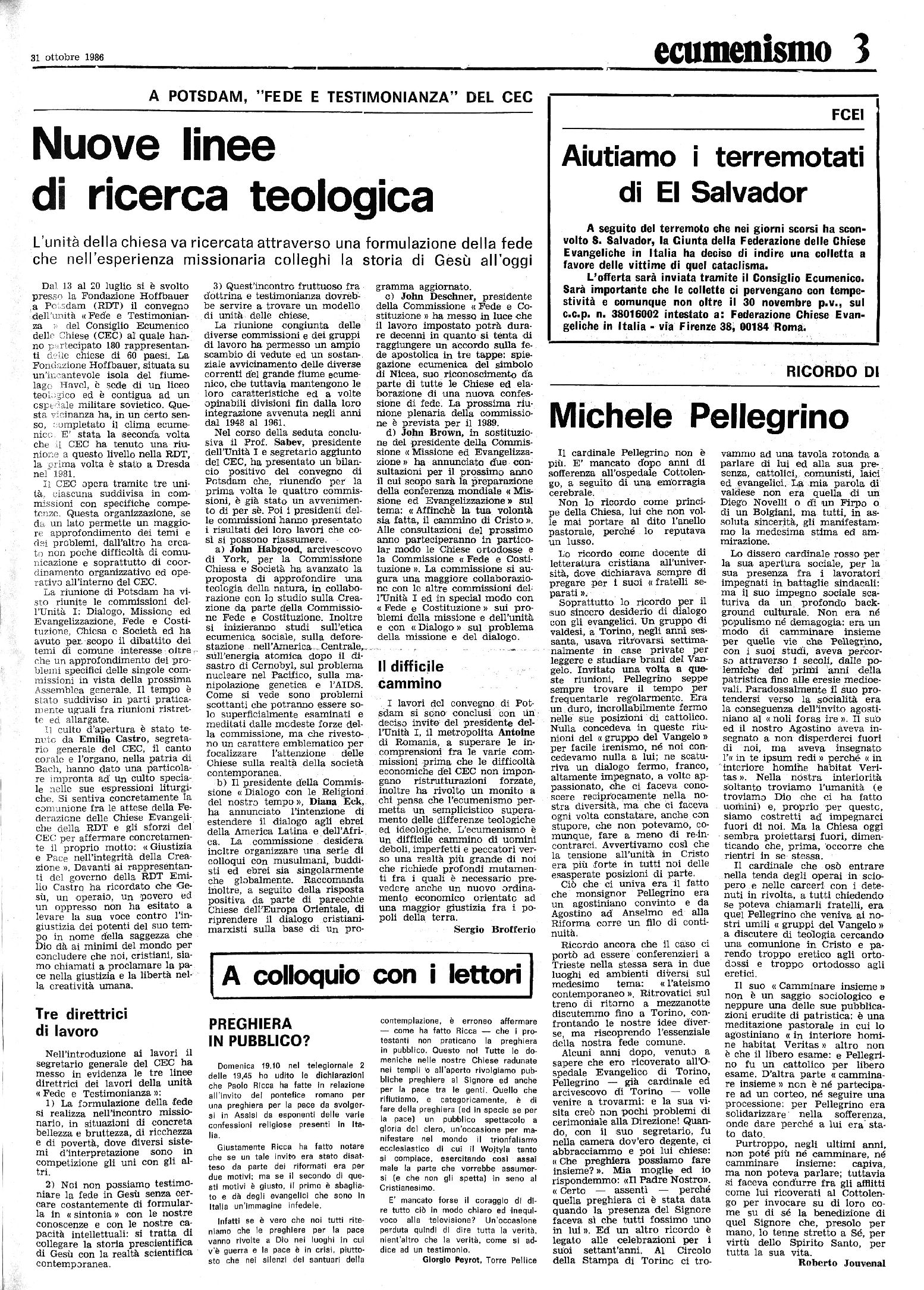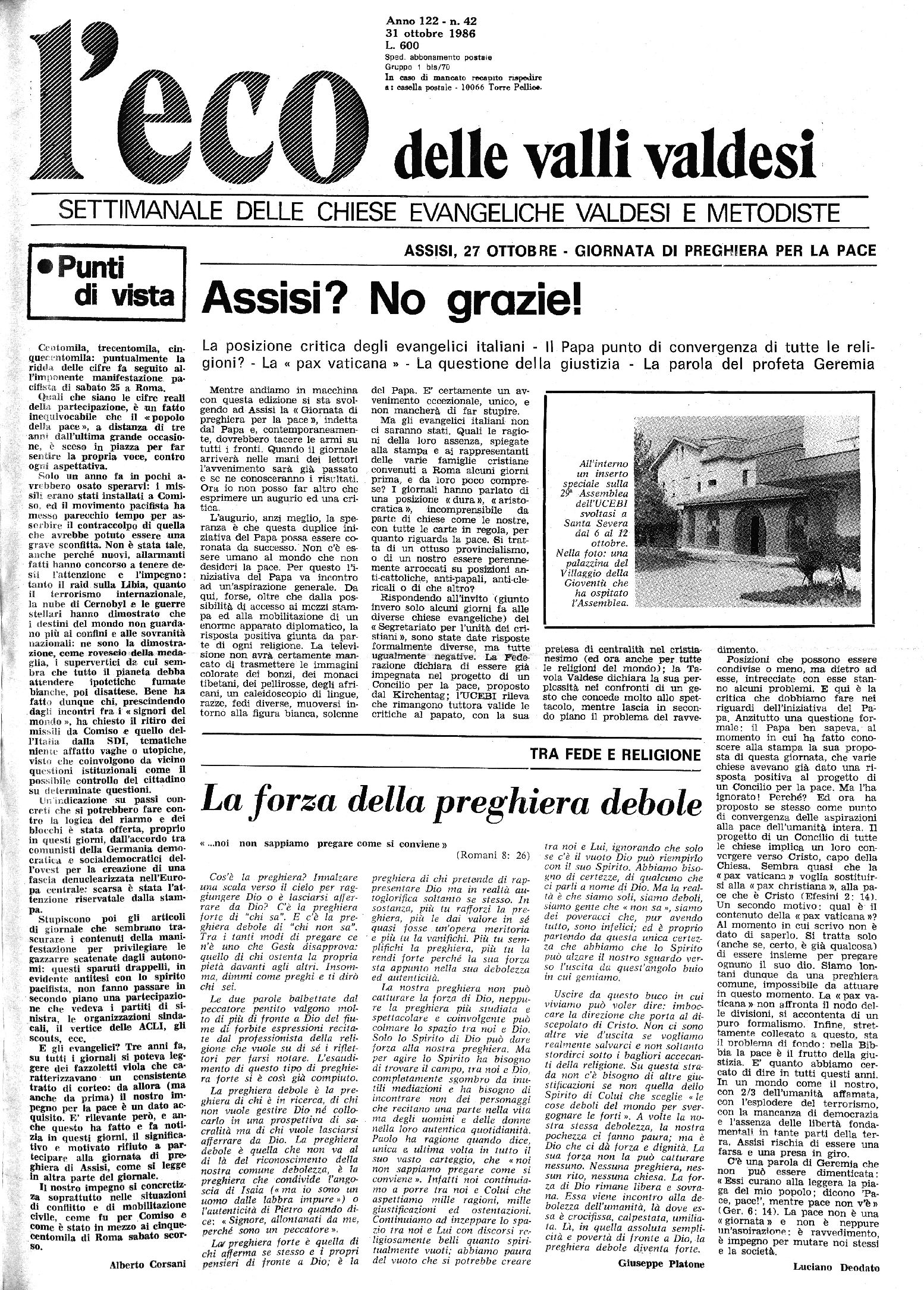 La posizione critica degli evangelici italiani - li Papa punto di convergenza di tutte le religioni? - La « pax vaticana » - La questione della giustizia - La parola del profeta Geremia