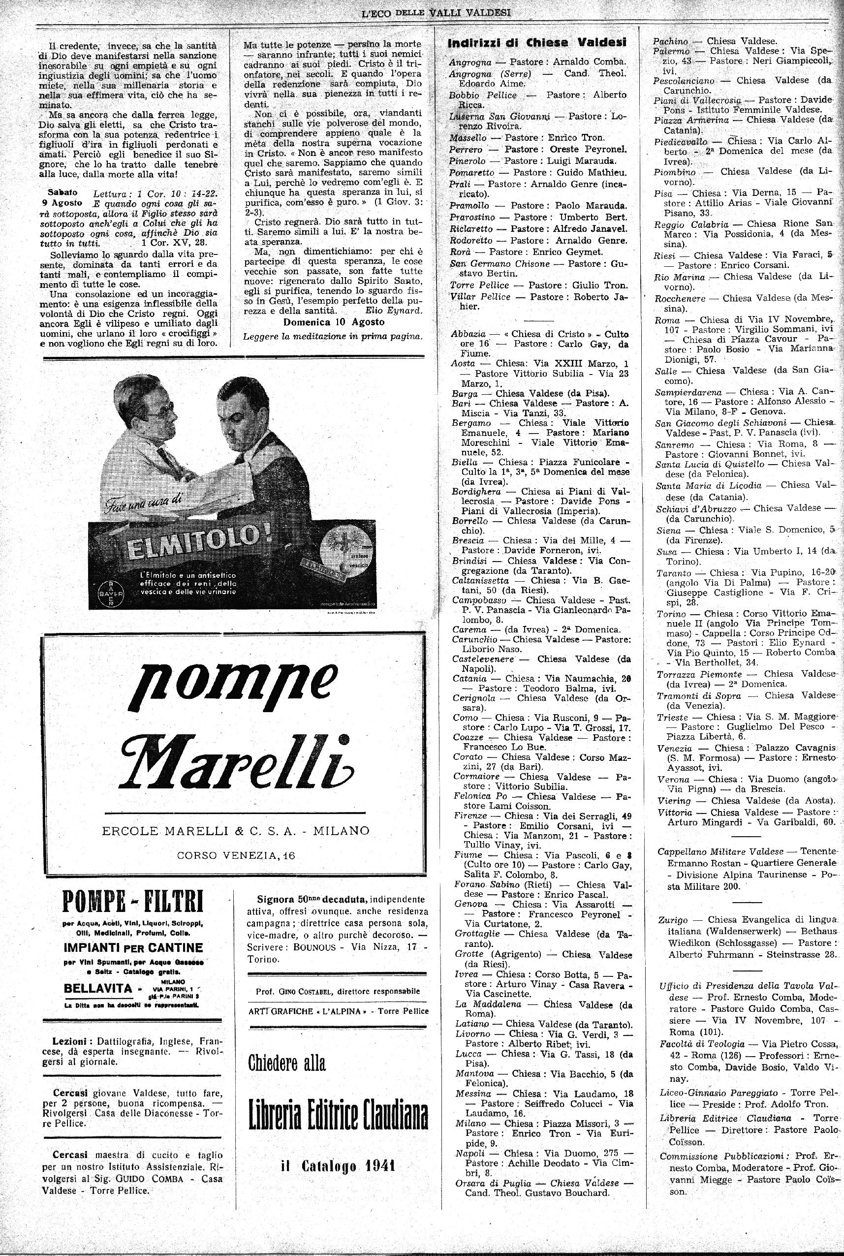 Cormatore — Chiesa Valdese — Pastore : Vittorio Subilia.
