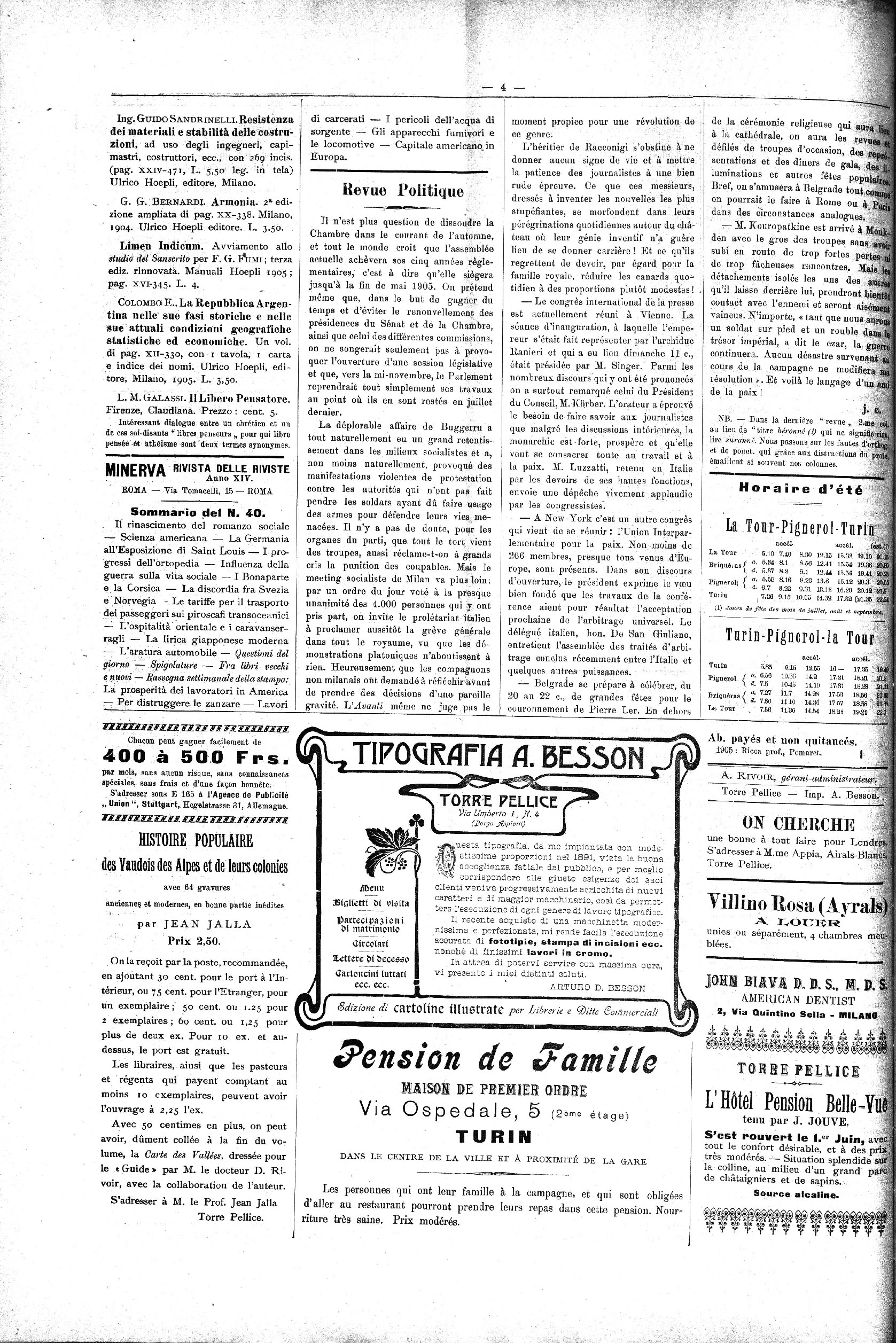 S’adresser pour la Rédaction à M. N. Toum, prof., Torre Pellice,
