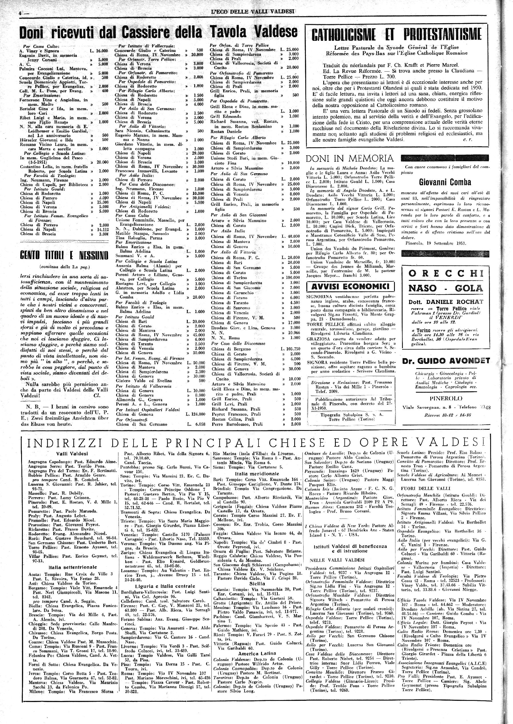 Valdesi: tei. 9237 - Via Angrogna 12 Torre Pellice (Torino).