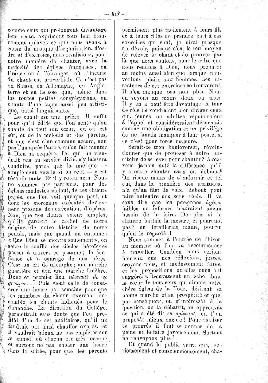 — Le chaut au culte principal — Evangélisation — Chronique — Nouvelles et