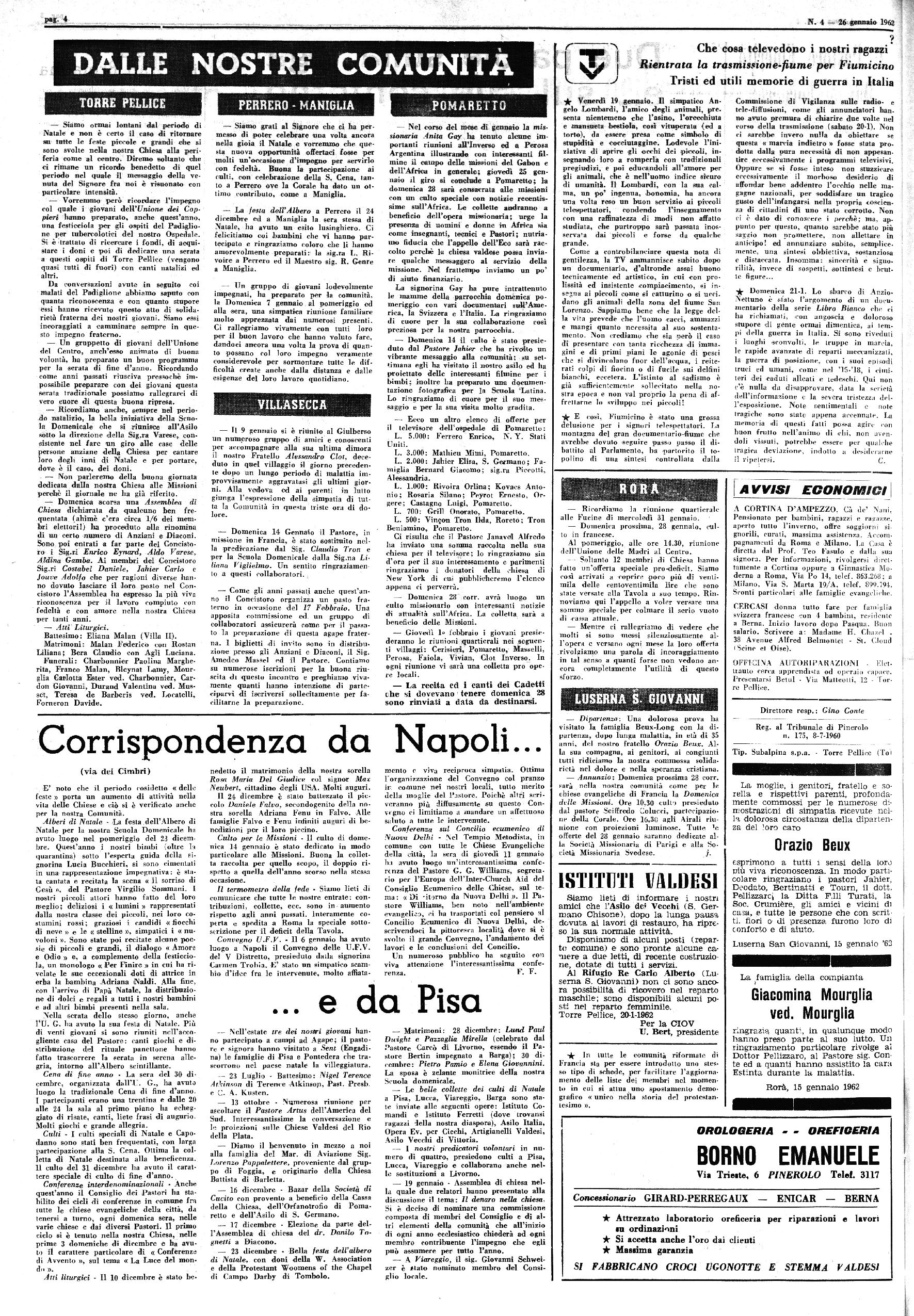 Anno XCII - Num. 4 ABBONAMENTI f Eco: L. 1.300 per l’interno « Eco » e « Presenza Evangelica » Spediz. abb. poetale - I Gruppo TORRE PELLICE — Sß Gennaio 1962