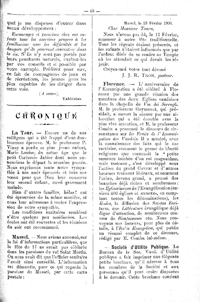 Vaudoises des Vallées», au nombre