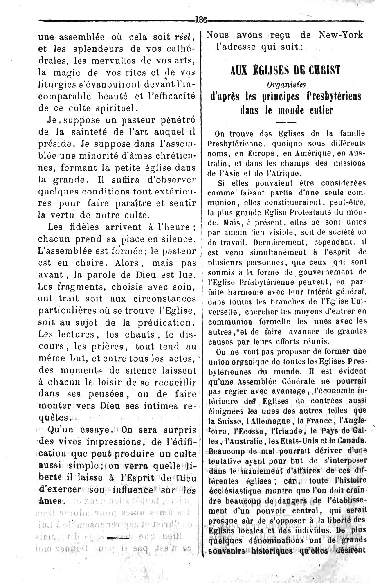 culte. — Aux églises de Christ. — Noucelles religieuses et faits diverses. — Chronique vaudoise et locale. — Chronique politique. — Annonce.