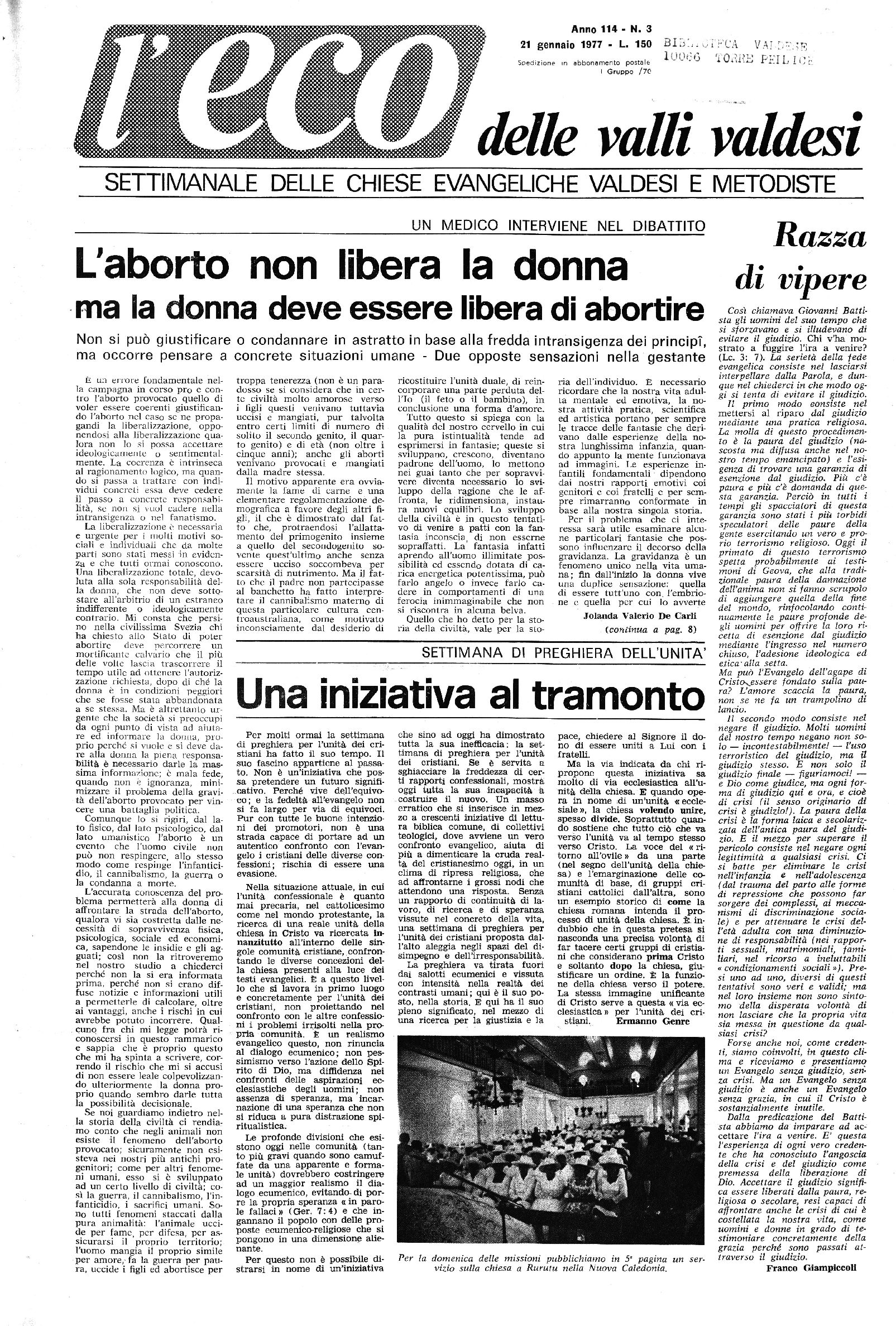 SETTIMANALE DELLE CHIESE EVANGELICHE VALDESI E METODISTE
