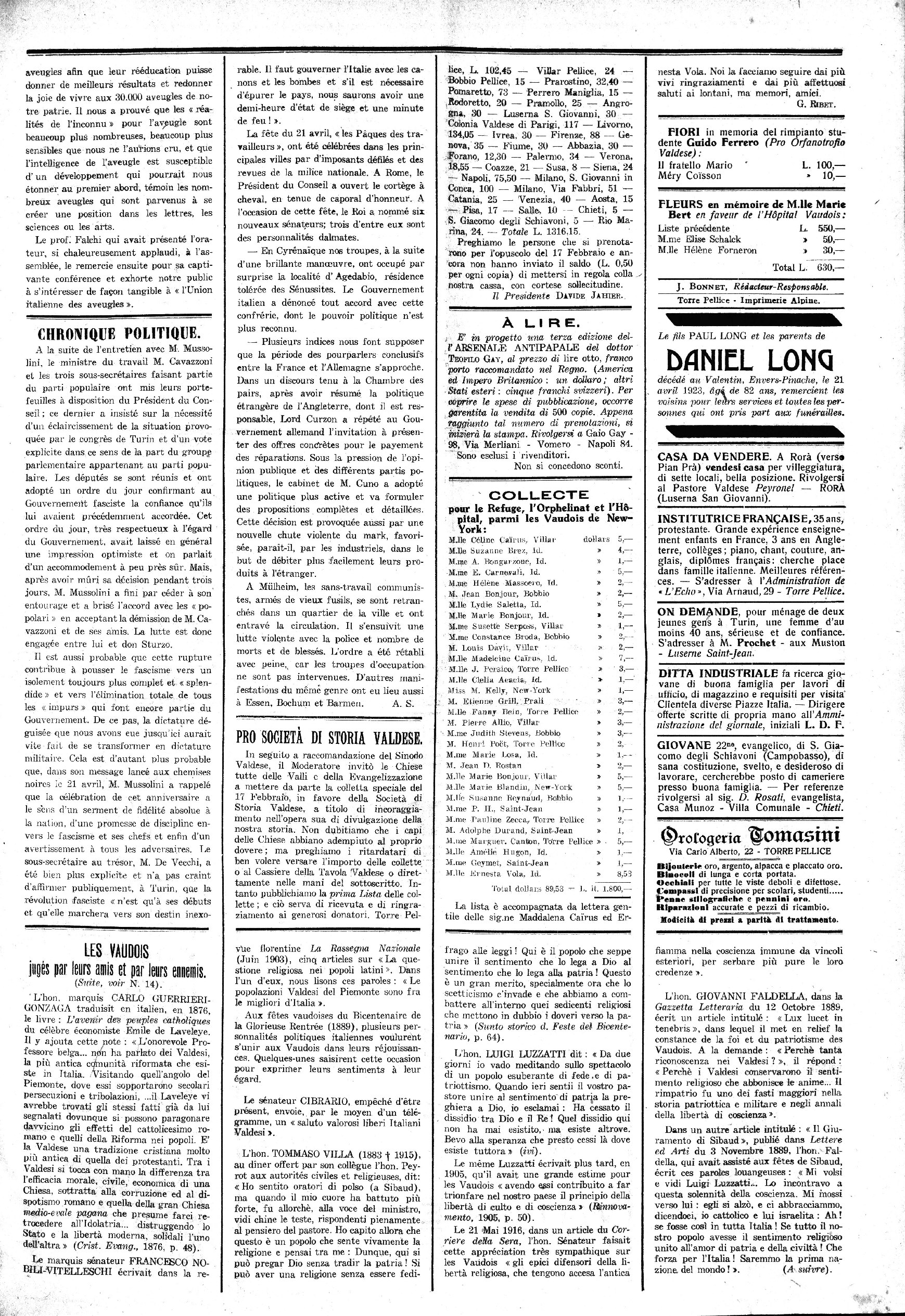 On s’abonne: à Torre PeUice, au Bureau d’administration de l’EcAo (Via