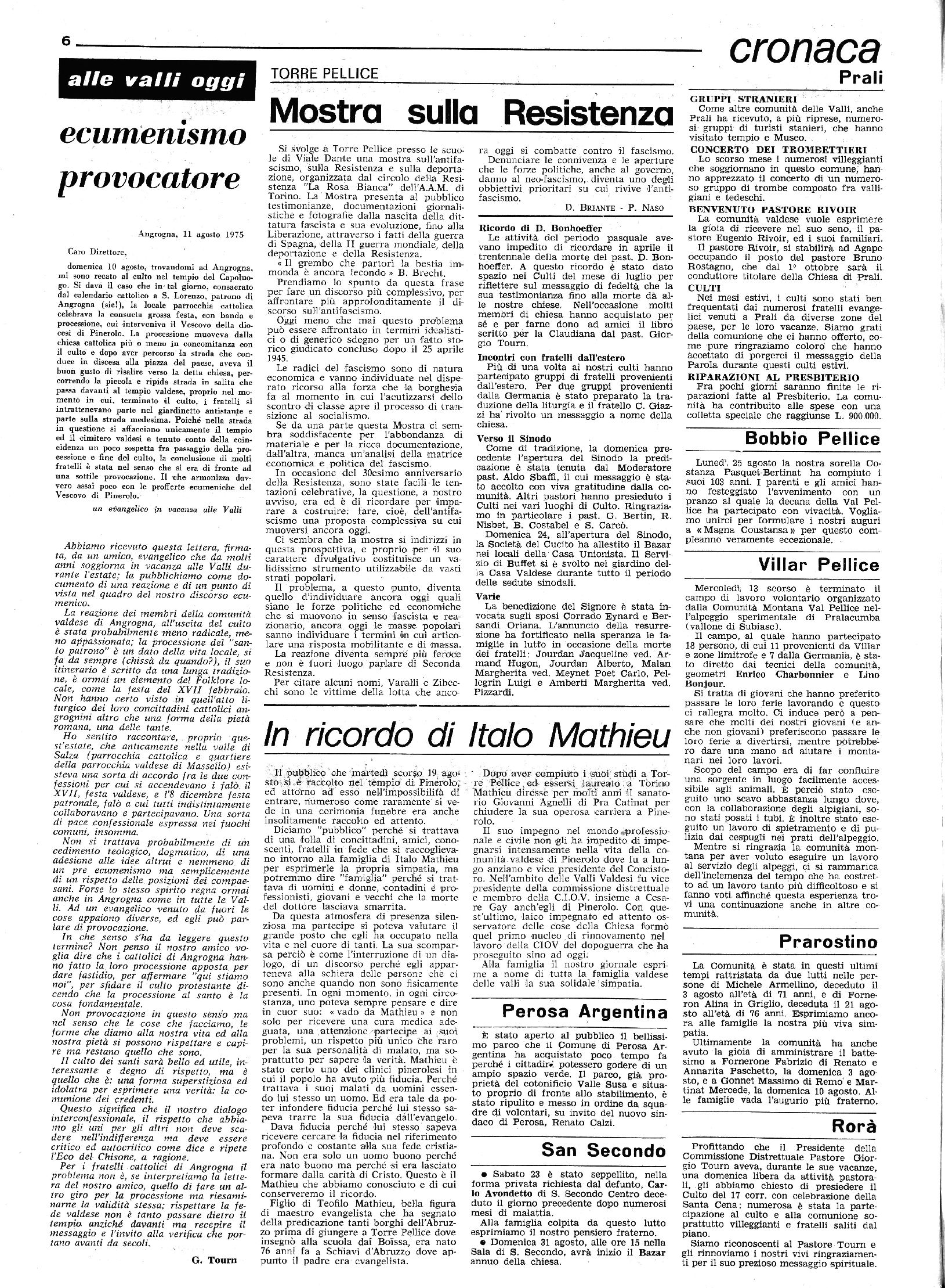 SETTIMANALE DELLE CHIESE EVANGELICHE VALDESI E METODISTE