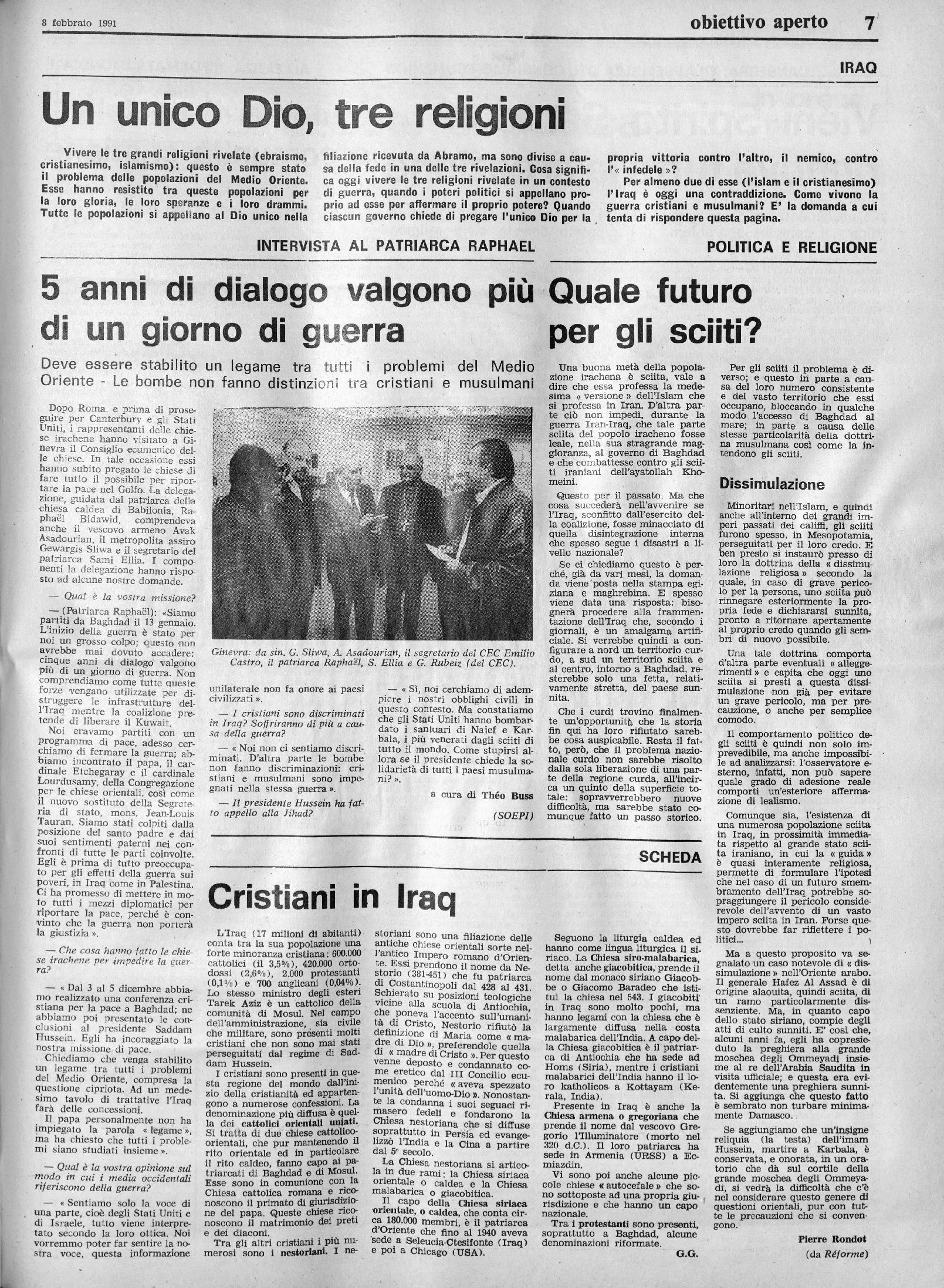 cristiane, di ritorno da un pellegrinaggio di pace a Baghdad,