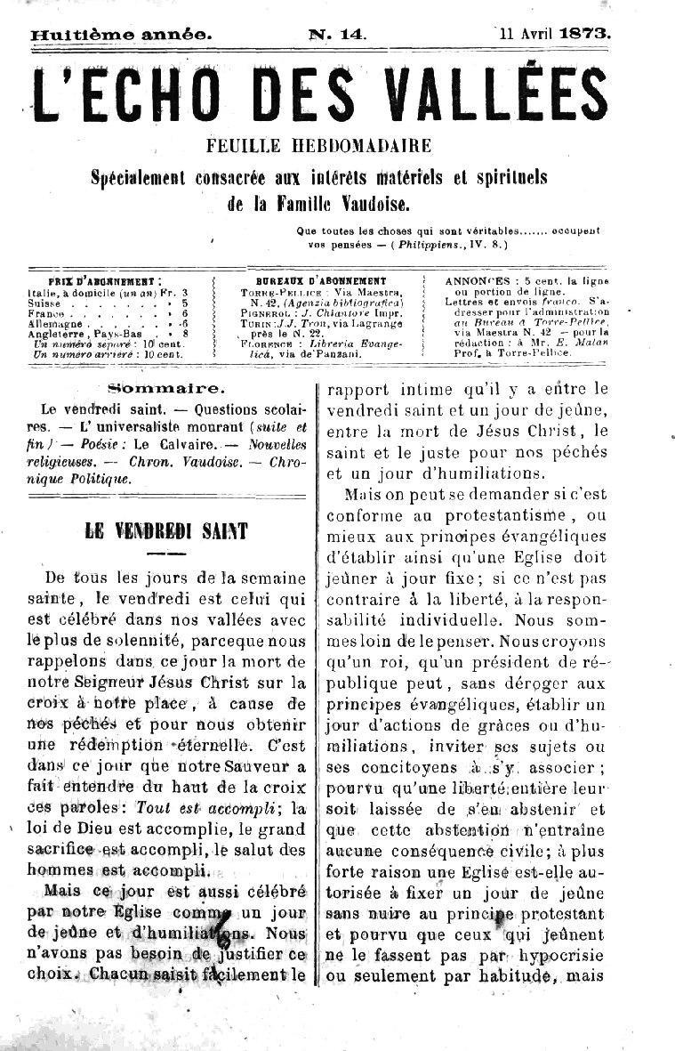 Le vendredi saint. — Questions scolaires. — L’ universaliste mourant {suite et
