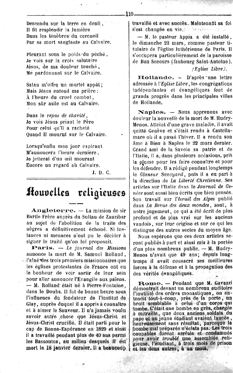 religieuses. — Chron. Vaudoise. ~ Chronique Politique.