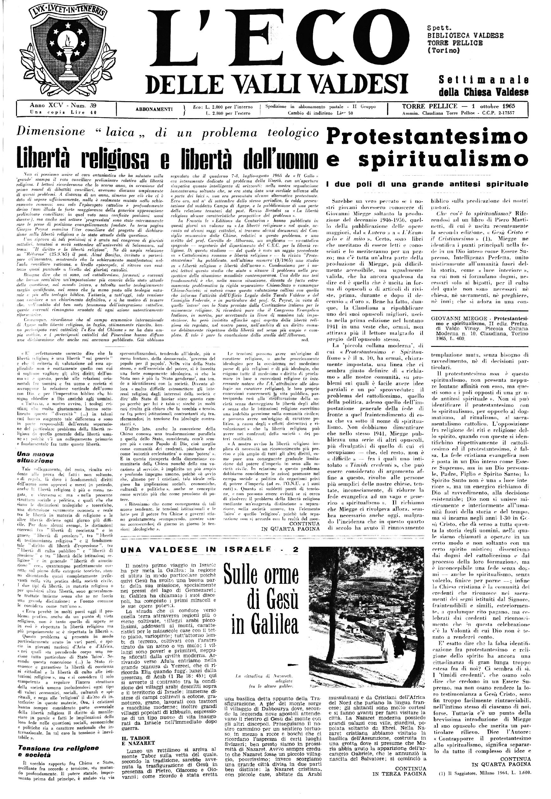 Anno xcv - Num. 39 ABBONAMENTI \ Ec o : L. 2.000 per Tinterno 1 Spedizione in abbonamento postale - II Gruppo 1 TORRE PELLICE — 1 ottobre 1965 I
