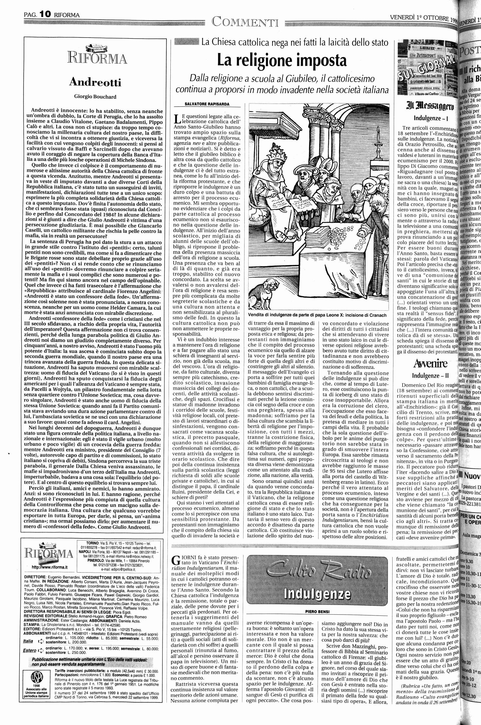 50% di cristiani e i responsabili religiosi vengono rispettati per la loro imparzialità,