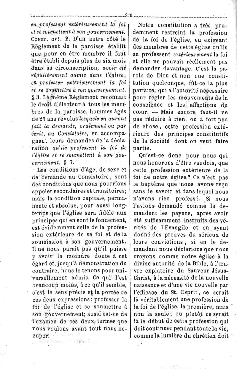 Los conditions (le l’électoral dans les paroisses de l'Eglise Vaudoise. — Les électeurs