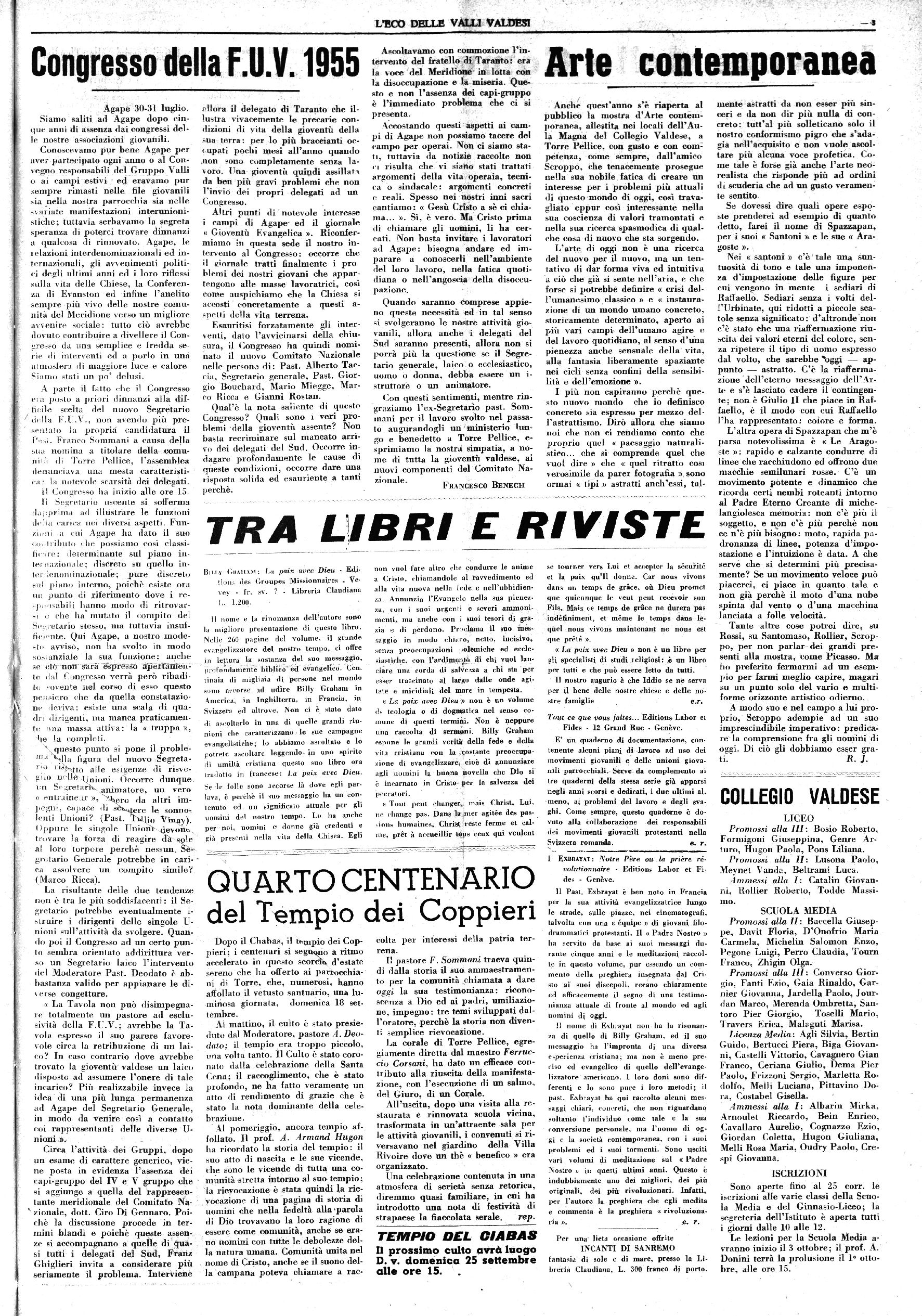 lEco: L. 700 per rintemoII Eco e La Luce-. L. IJOO per riatemo i Spedir, abb. poetale II Gruppo | TORRE PELLICE — 23 settembre 1955