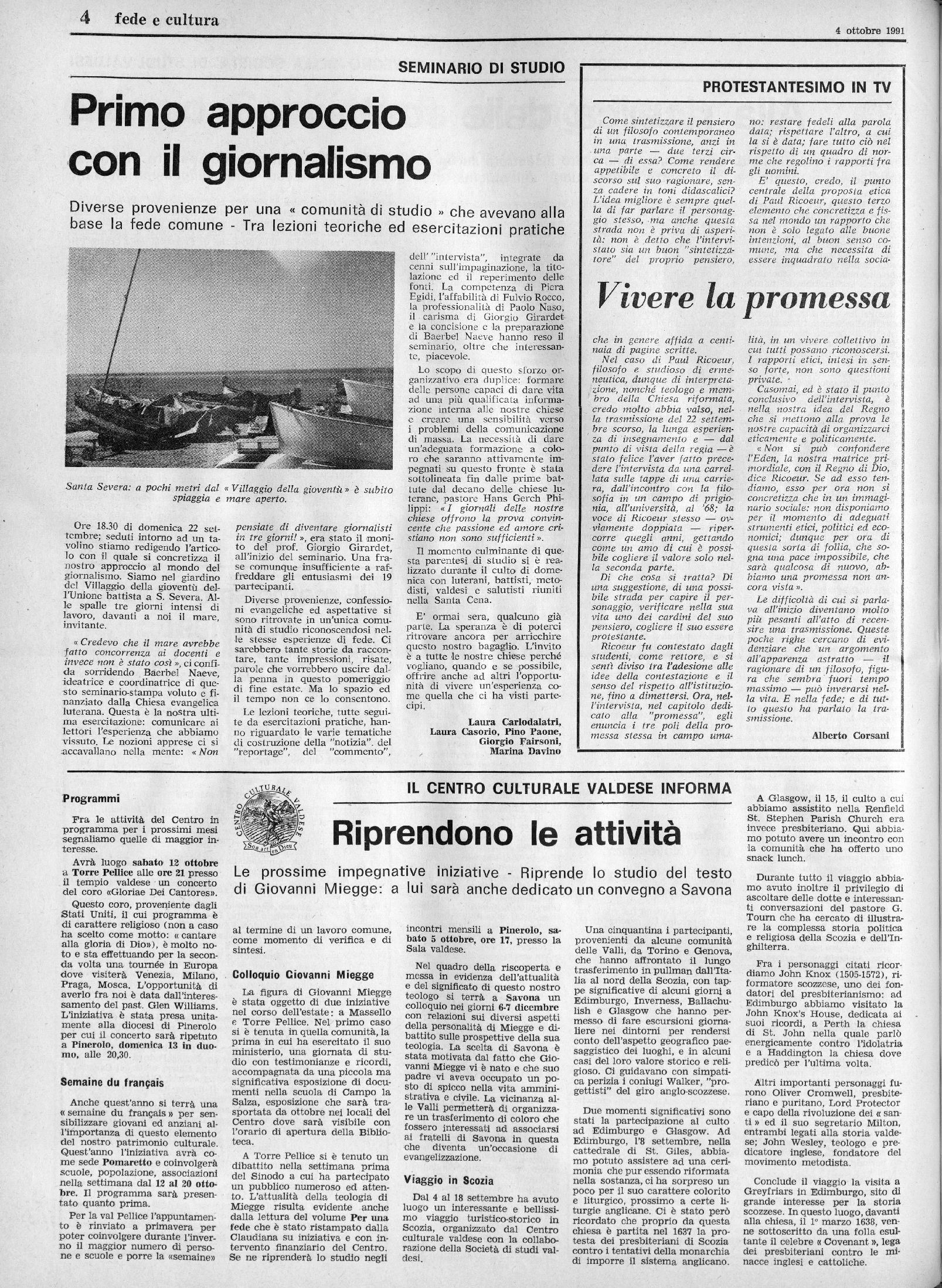 SETTIMANALE DEI l F CHIESE EVANGELICHE VALDESI E METODISTE _