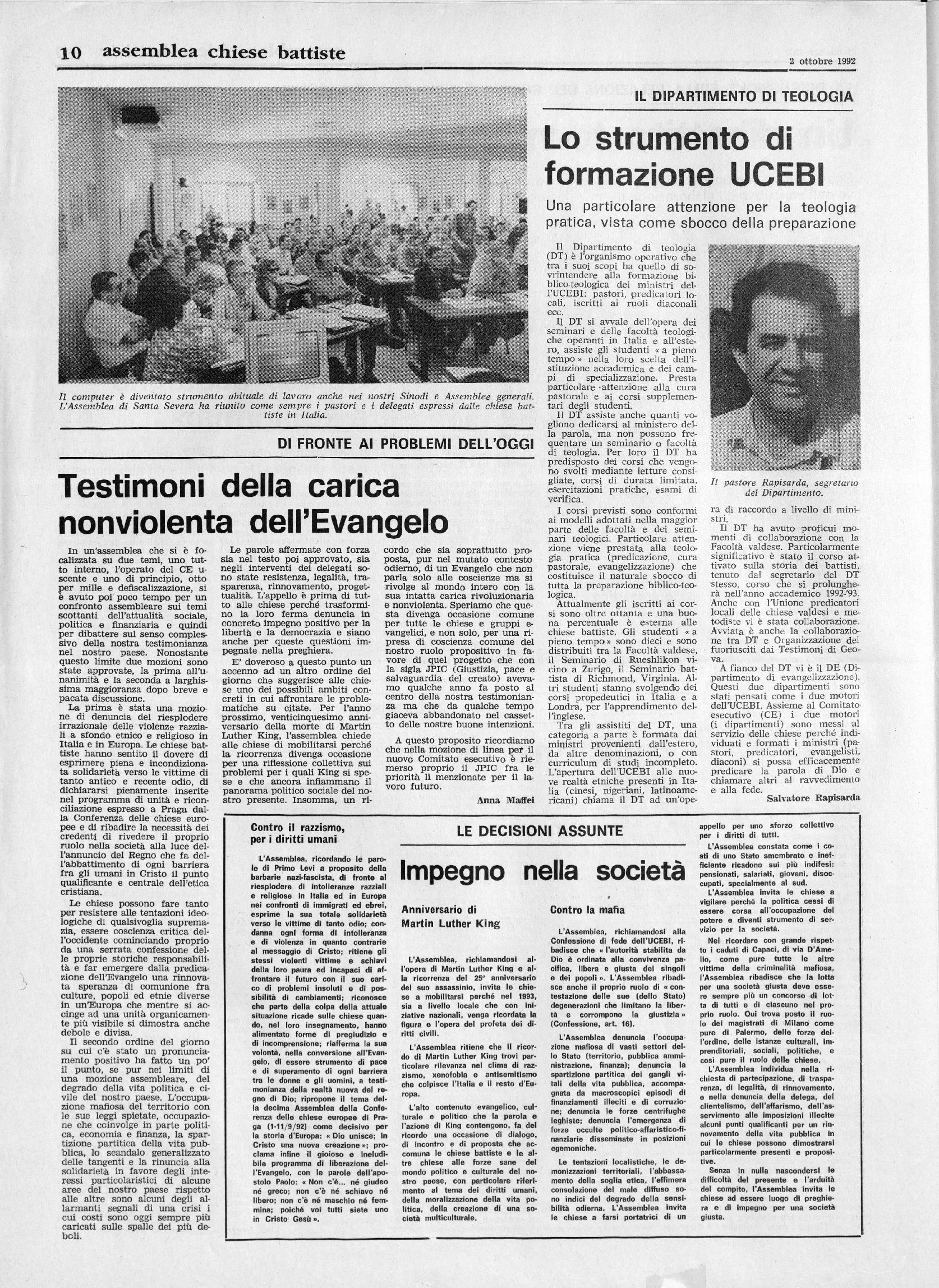 SETTIMANALE DELLE CHIESE EVANGELICHE IlATTISTE, METODISTI: E VALDESI
